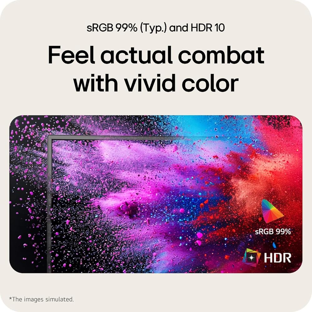 العمل والإبداع واللعب بألوان جريئة - مع دعم HDR10 وتغطية التدرج اللوني بنسبة تصل إلى 99% sRGB، توفر شاشة LG هذه ألوانًا غنية وحيوية عبر نطاق واسع - مثالية للألعاب الغامرة والمشروعات الإبداعية والإنتاجية اليومية.