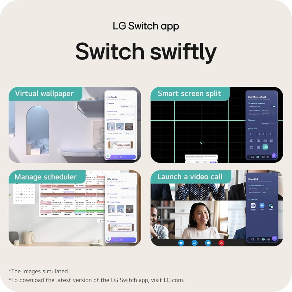 قم بتخصيص عرض الشاشة باستخدام تطبيق Switch - يقوم تطبيق Switch بتحويل شاشتك إلى مركز متعدد المهام للعمل والألعاب والبث. قم بتقسيم الشاشة بسهولة إلى ما يصل إلى 6 أقسام، أو تخصيص تخطيطات العرض، أو بدء مكالمات الفيديو باستخدام مفتاح تشغيل سريع واحد.