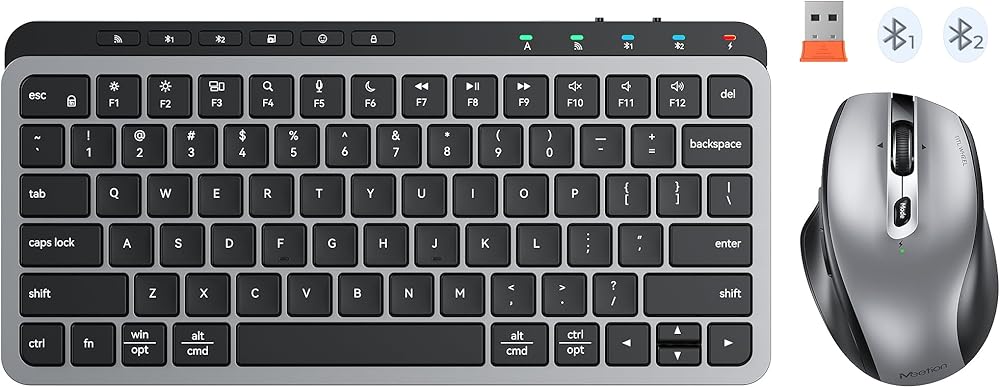 MEETION Wireless Bluetooth Keyboard and Mouse Combo, Rechargeable Slim Wireless Keyboard and Mouse, 3 Multi-Device Connection, Low-Profile Compact Keyboard, for PC Laptop Tablet iPad, Windows/Mac/iOS