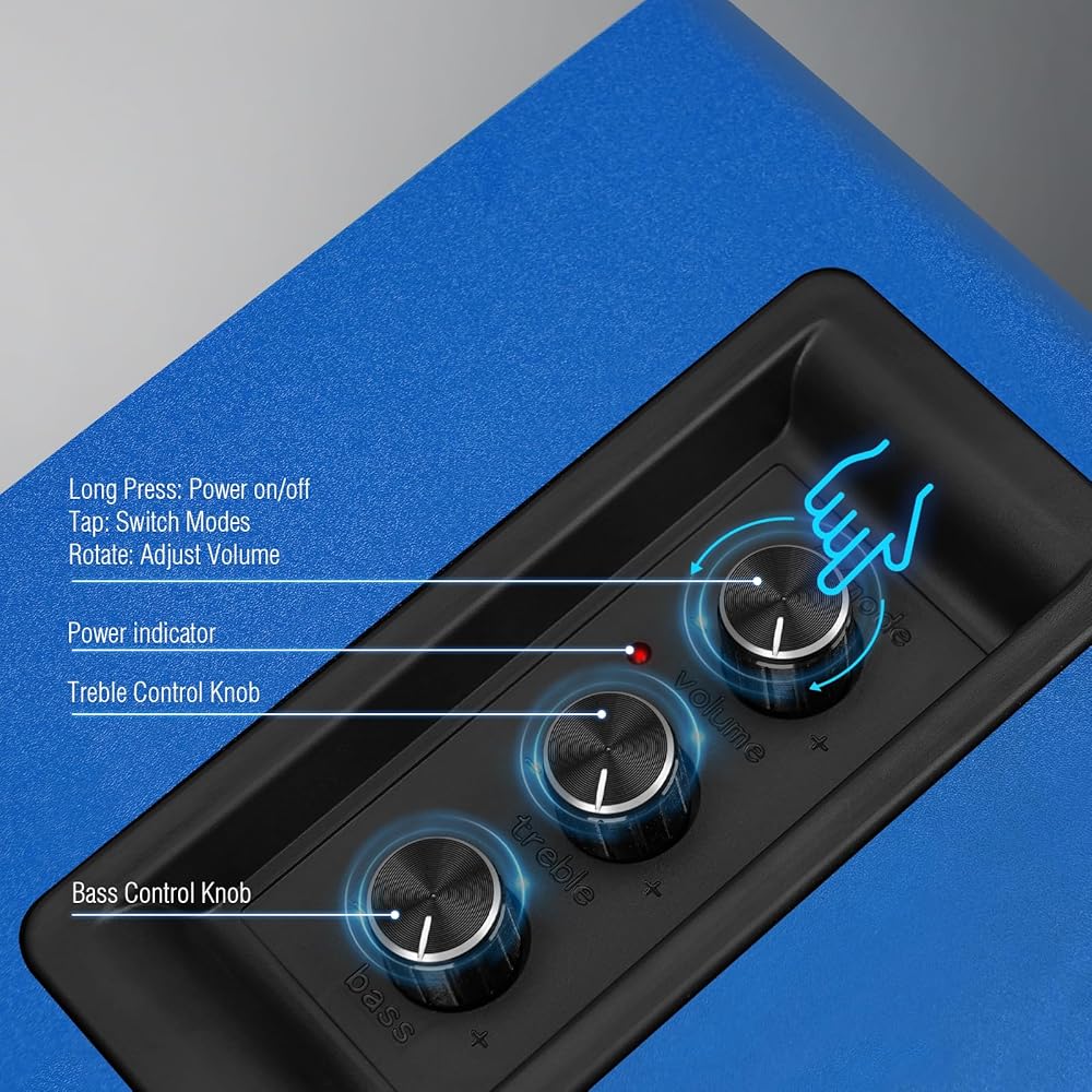 اتصال عالمي: مع مدخلات Bluetooth 5.3 وAUX/RCA وUSB-C، فإنه يتصل بسلاسة بأجهزة الكمبيوتر المكتبية وأجهزة الكمبيوتر المحمولة والأقراص الدوارة وأجهزة التلفزيون والهواتف والخلاطات وأجهزة الألعاب ومشغلات الوسائط. ارفع مستوى تجربتك الصوتية للموسيقى والألعاب والأفلام والبودكاست من خلال نقل الصوت بدرجة الاستوديو.