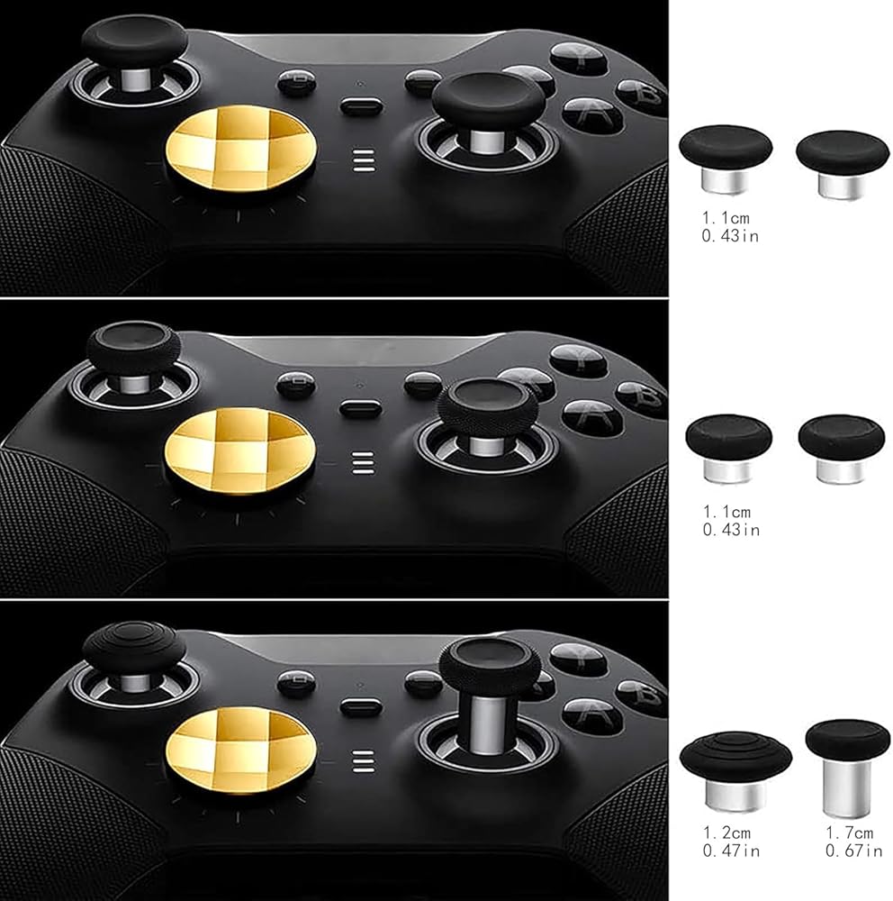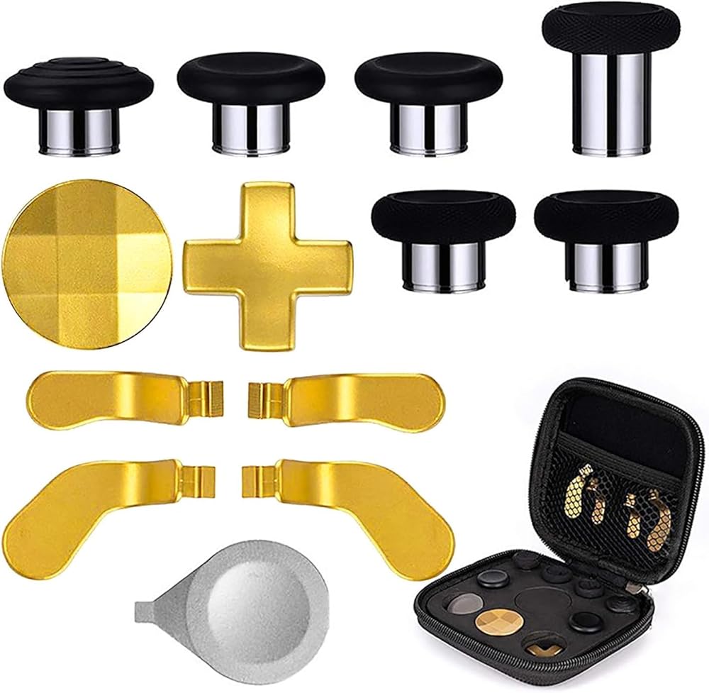 Compatible with Xbox One Elite Series 2 Controller ( Model 1797 ). PACKAGE INCLUDE- Includes 6 Premium Metal thumbsticks, 4 Bright Gold Paddles (2 Medium & 2 Mini), 2 Bright Gold D-Pads, 1 Silver Adjustment Tool with Storage Bag.
