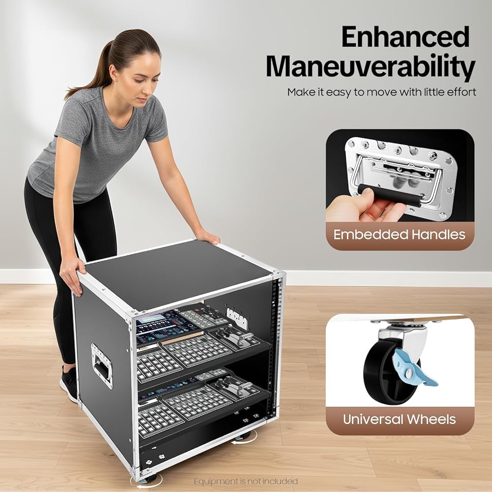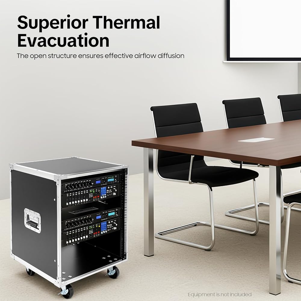 Professional equipment needs professional treatment! Stop putting your audio equipment randomly on the countertop, this poor heat dissipation state will greatly shorten the life of your equipment. This 12U portable rolling network rack made of high-quality MDF can provide good heat dissipation for your equipment.