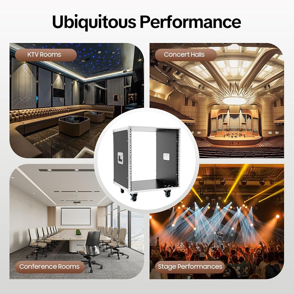 • 【Widely Applicable】: This 12U free standing server cabinet/audio rack features 20-inch inner width, perfectly fitting equipment ≤20 inches wide (computer chassis, mixing consoles, microphone amplifiers, etc.). The open frame design with rational partitioning keeps your KTV, concert hall, conference room neat and organized—ideal for professional scenarios.