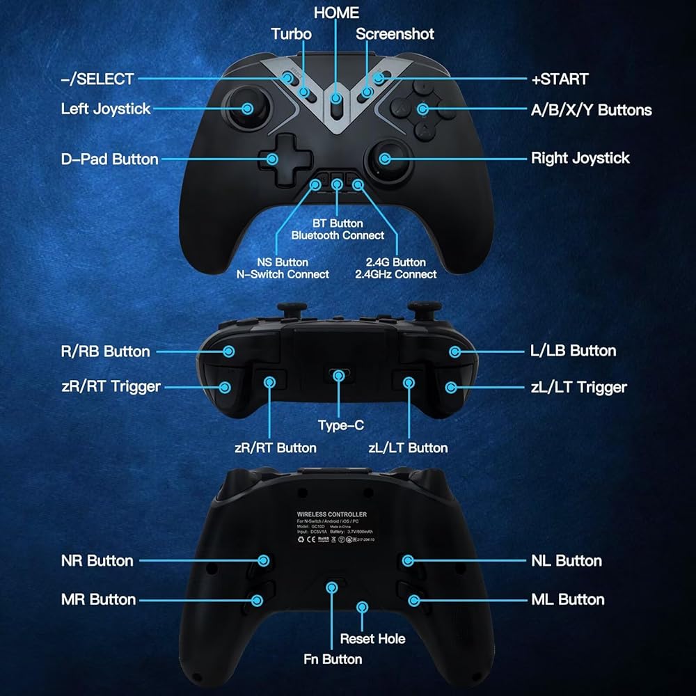 Wide Compatibility: This gaming controller works with PC (for Windows 7 8 10 11), for Android (phones, tablets, TV, and TV boxes), for iPhone/iPad/Mac/Apple TV, for Switch/Switch Lite/Switch OLED, and for Steam Deck, for Tesla and Cloud Games.
