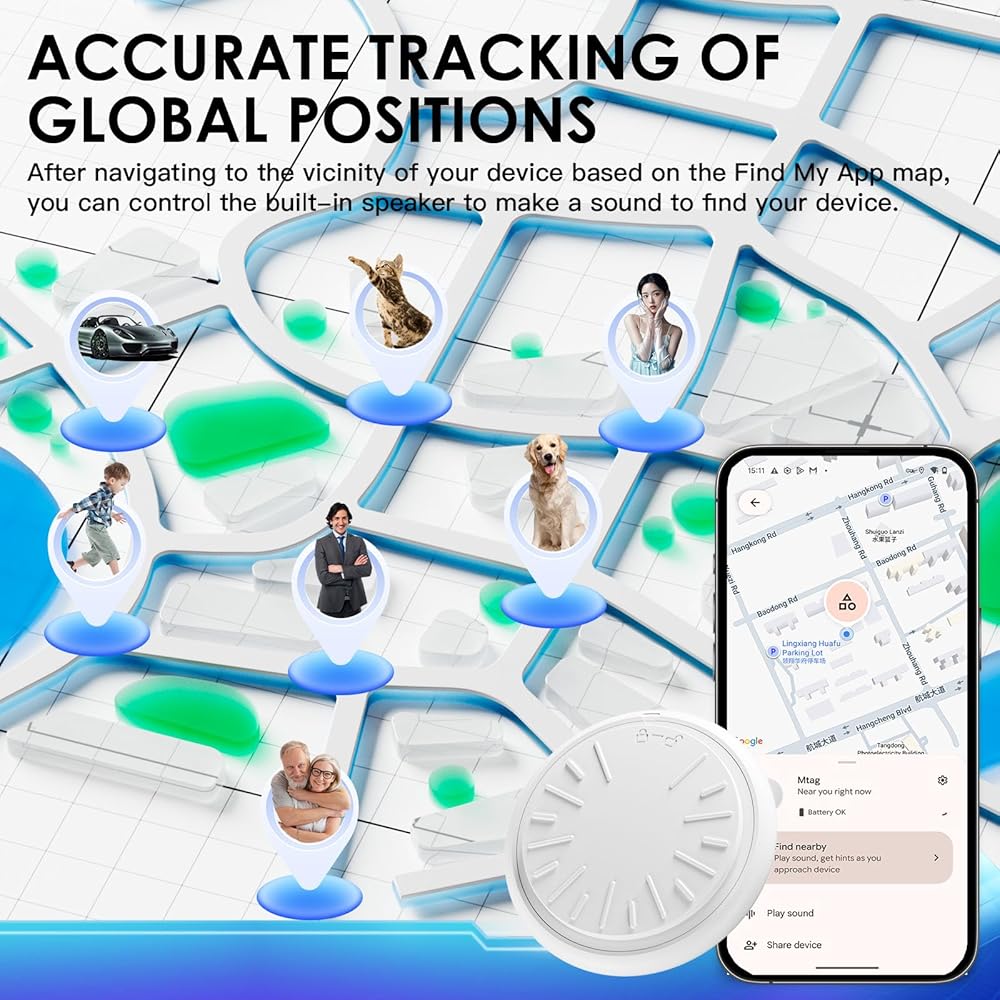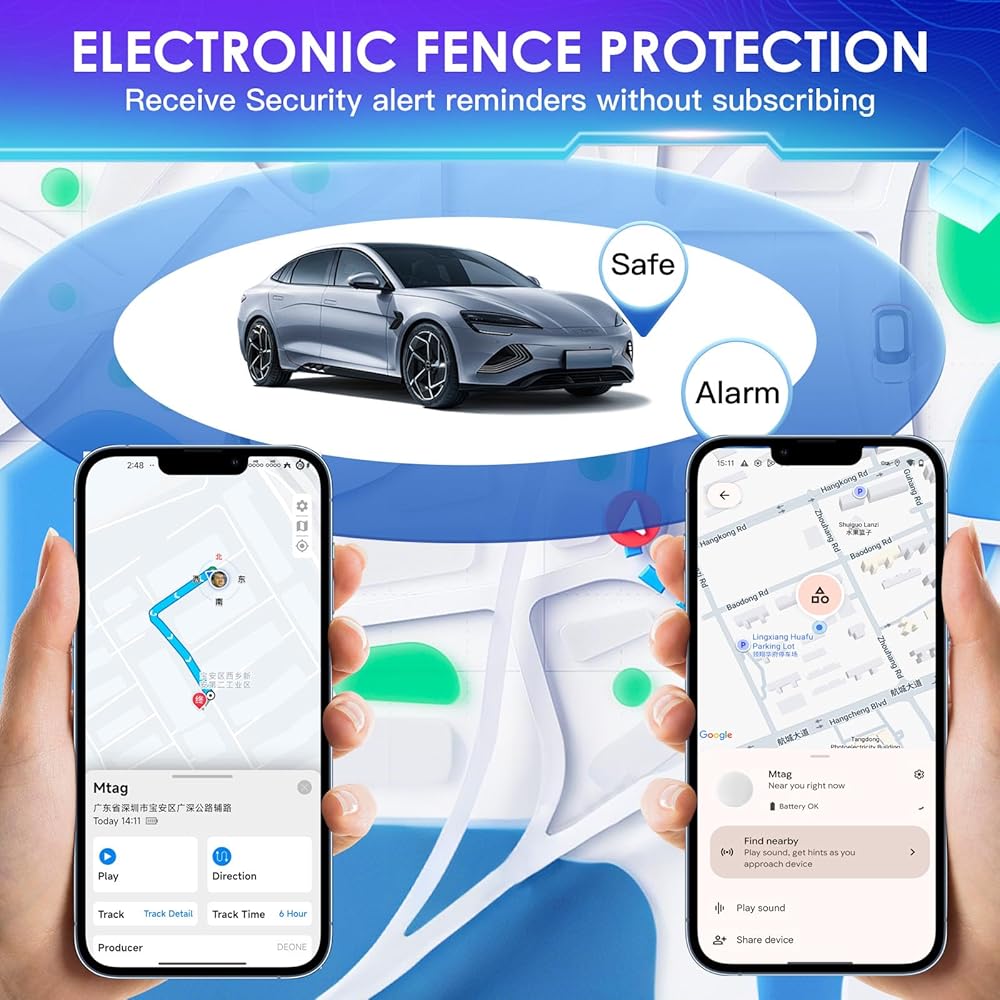 【توافق عالمي للهواتف الذكية - جاهز لنظامي التشغيل iOS وAndroid】يمكنك الاقتران بسهولة مع أي هاتف ذكي يعمل بنظام iOS أو Android في ثوانٍ عبر البلوتوث. استخدم تطبيق FindMyTag المجاني لتحديد موقع جهاز التعقب الخاص بك وعرض سجل الحركة وتمكين التنبيهات. جهاز تعقب GPS رائع لمستخدمي Android وعائلات Apple على حد سواء - لا يتطلب أي إعداد خاص.