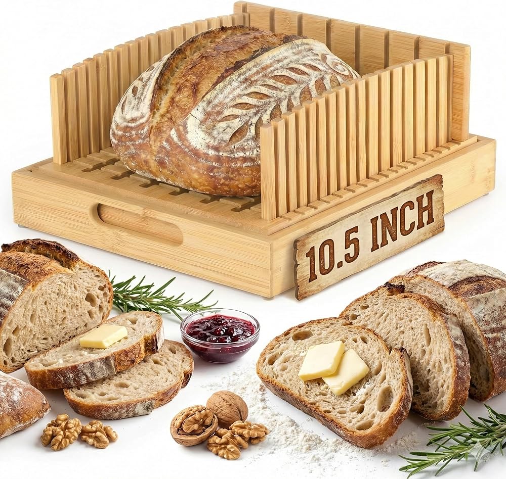 Crafted from 100% natural, premium bamboo, this isn't just a kitchen gadget; it's a centerpiece. The smooth, polished wood adds a touch of rustic elegance to your countertop. Imagine taking your fresh loaf from the oven, placing it on this sturdy guide, and serving perfectly even slices directly on the beautiful bamboo tray. It transforms a simple breakfast into a café-quality experience.