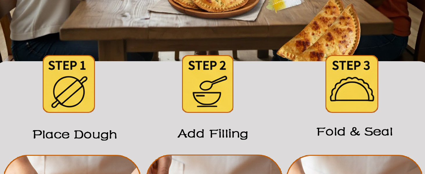 SIMPLE & RELIABLE OPERATION: Tortilla sealer crimpet tortilla, sealer Achieve professional-looking results in three simple steps. Just place your wrap, add your favorite fillings, and press. Our pro-tip ensures a reliable seal, helping you achieve great results on your very first try.