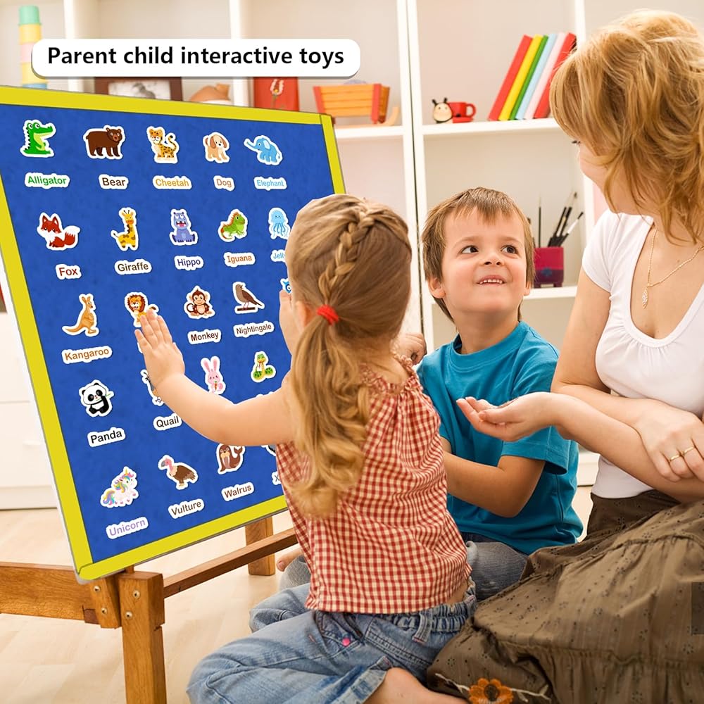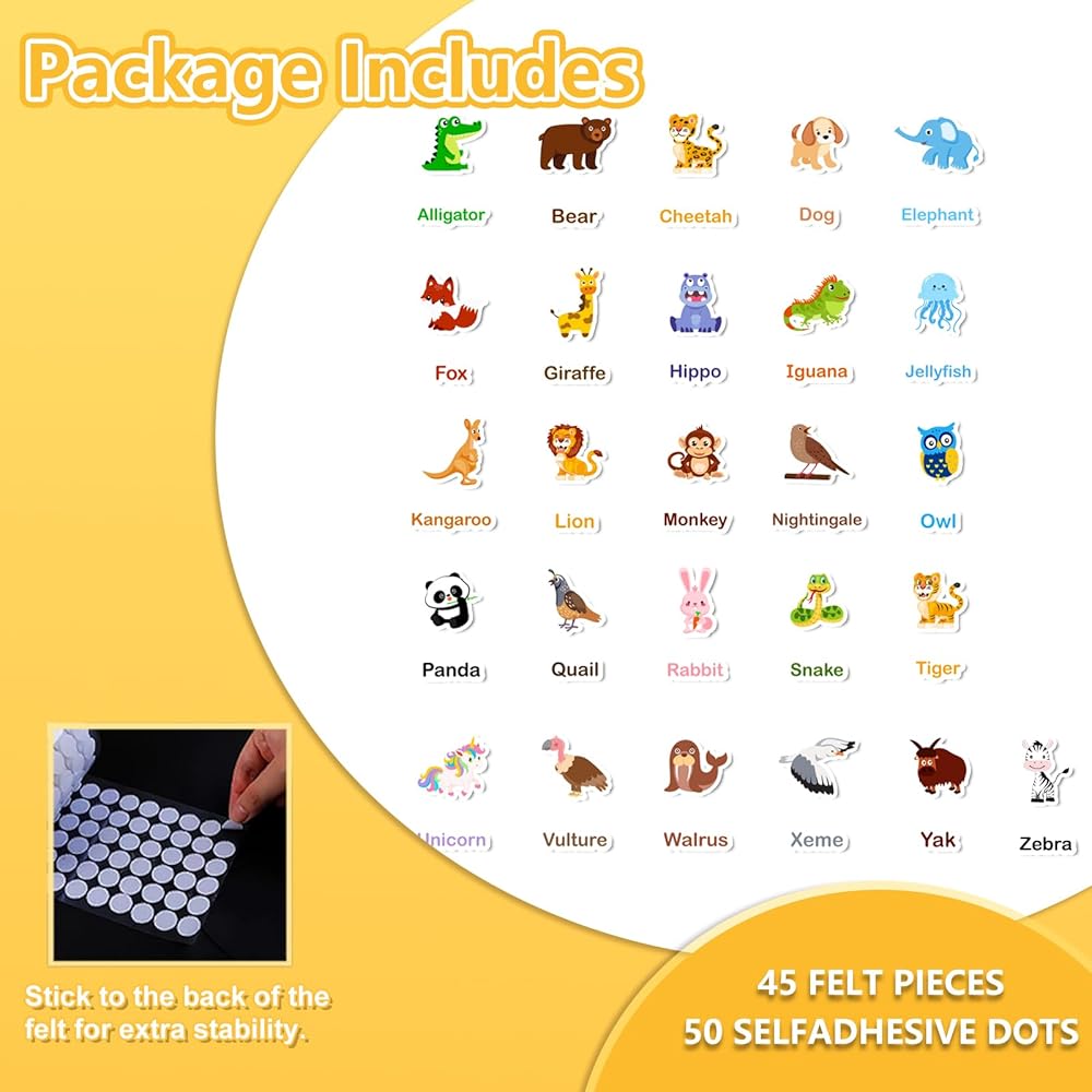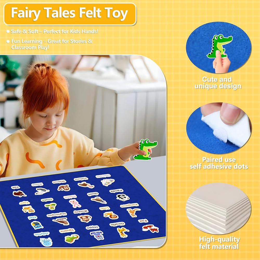 Spark early learning and creativity with this felt animals 52 pcs felt pieces story set! This interactive play kit features a vibrant collection of 52 soft, colorful felt pieces, including various animals and word cards designed to engage young learners. Perfect for kindergarten learning words, early storytelling, and preschool felt board activities, this set helps children build vocabulary, improve fine motor skills, and boost language development. Ideal for use on any felt or flannel board (not included), these felt story pieces for toddlers make circle time, homeschool lessons, and classroom learning more hands-on and interactive. Kids can create their own animal stories while associating words with pictures, fostering both literacy and imagination.Made from durable, child-safe felt, the pieces are easy to handle and reusable for endless storytelling fun. This kit is a perfect addition to early childhood education tools, Montessori toys, and interactive learning toys that teachers and parents love for keeping kids engaged and excited about learning. Whether for preschool learning activities, kindergarten classroom must-haves, or homeschool supplies, this felt board story set offers a fun, educational experience that encourages curiosity and confidence in young learners.