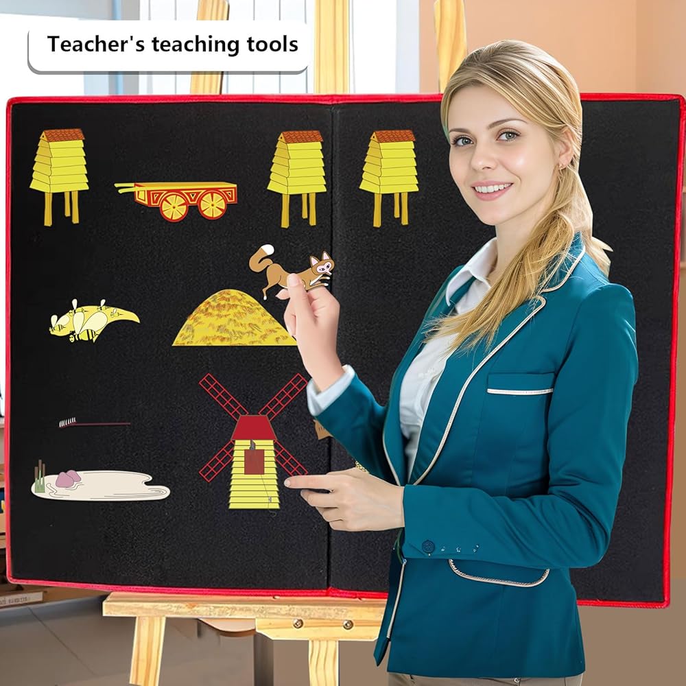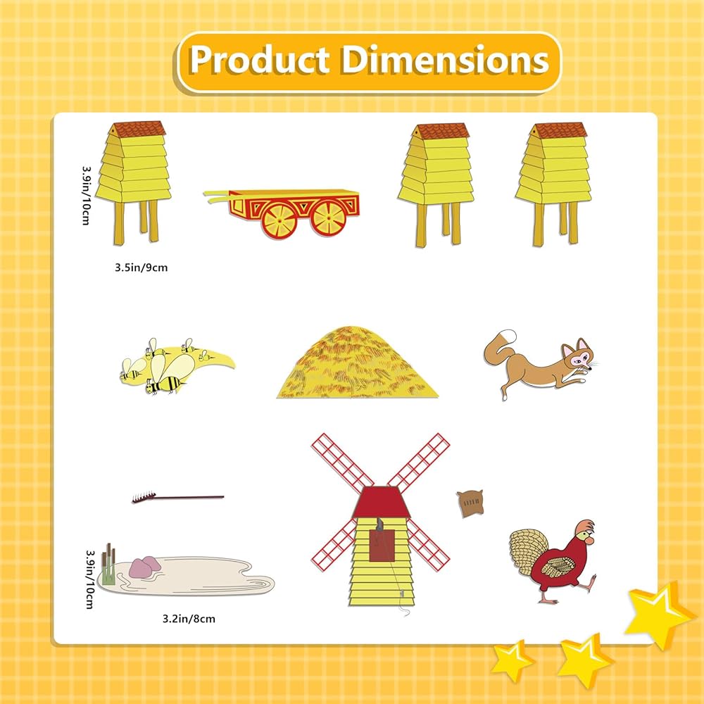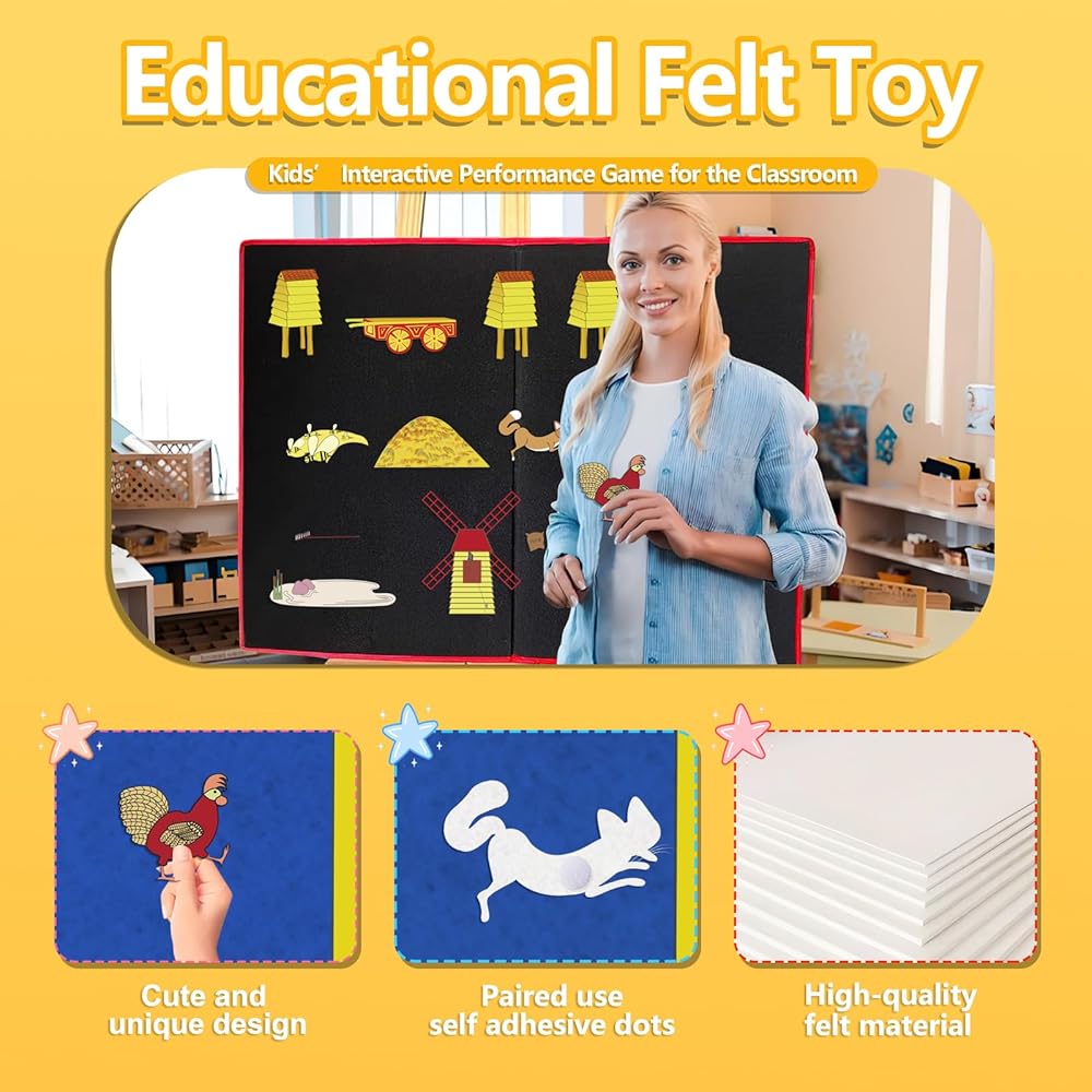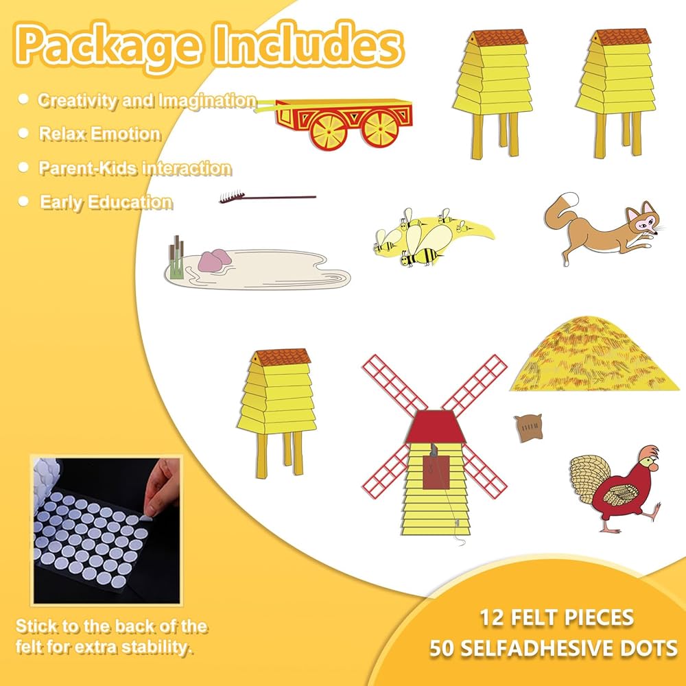 Bring the beloved story to life with this engaging 12-piece Felt Story Board Set, specially designed for toddlers and early learners. This set features soft, colorful felt pieces that beautifully depict the key characters and scenes from the classic children's book. Follow rosie the hen as she takes her peaceful walk around the farm, all while a sneaky fox quietly follows behind. Each piece corresponds to an important moment in the story, allowing children to retell the tale in their own words while developing critical language and storytelling skills.Perfect for early education and interactive learning, this felt story board helps young children build vocabulary, improve sequencing, and boost comprehension through hands-on play. The large, easy-to-handle pieces are designed to encourage fine motor skills, hand-eye coordination, and imaginative thinking. Whether used in a classroom setting during circle time, at home for quiet play, or in homeschooling environments, this felt board set offers endless opportunities for creative engagement. Parents and teachers will appreciate how this set supports early literacy and communication skills in a fun, screen-free way. It is also lightweight and portable, making it ideal for on-the-go learning or travel. Encourage your child's curiosity and love for storytelling with these charming, durable felt pieces. Add this rosie's walk felt story board set to your collection of early education toys and watch as your little one's imagination and language skills grow with every play session. It's a wonderful teaching tool that combines learning with play, helping toddlers develop confidence in storytelling while enjoying a timeless farmyard adventure.