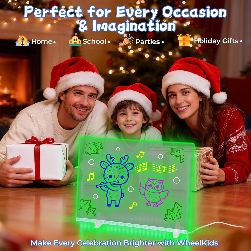 Wheelkids Acrylic Message Led Drawing Board for Kids, 13.7" x 10.2" USB Powered Glow Light Up Drawing Board with 10 Light Effects & 7 Colors with Markers, Neon Writing Tablet Gift for Kids