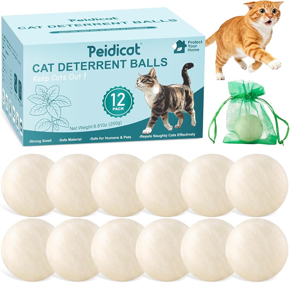 - طارد للقطط في الهواء الطلق لإبعاد القطط، كرة بيضاء طاردة طبيعية تمنع القطط من التبول، تحمي من الخدش والمضغ 12 قطعة