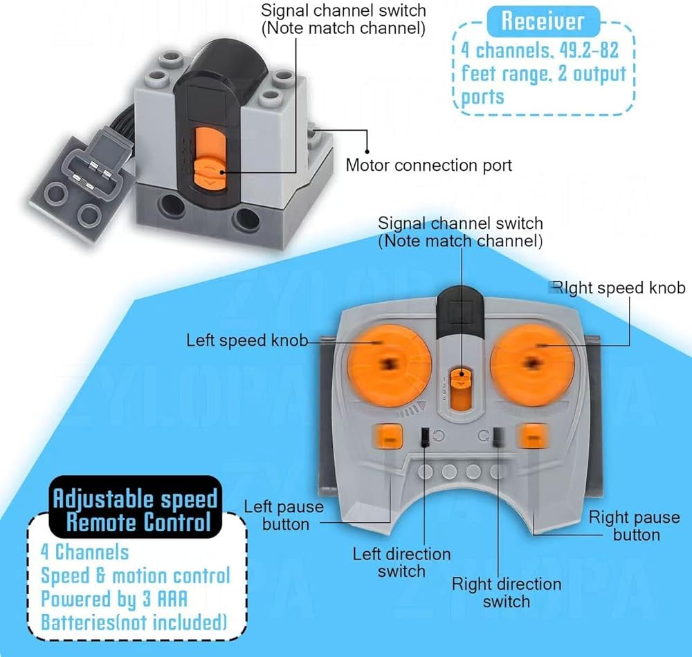 Zylopa 9pcs motor-function-set compatible with major building block brands, includes-switches light-cables remote controls and more
