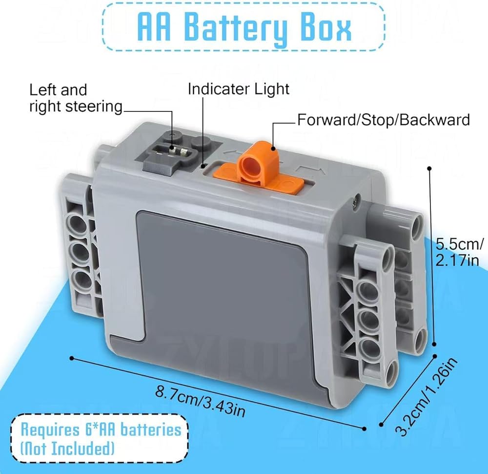 Technic-motors set: 2*M-Motors(8883),1*L-Motor(88003),1*AA-Battery-Box(8881), 1*IR-Speed-Remote-Control(8879), 1*IR-Receiver(8884), 1*Switch(8869), 1*Light-Wire(8870) and 1*25cmExtension-Wire