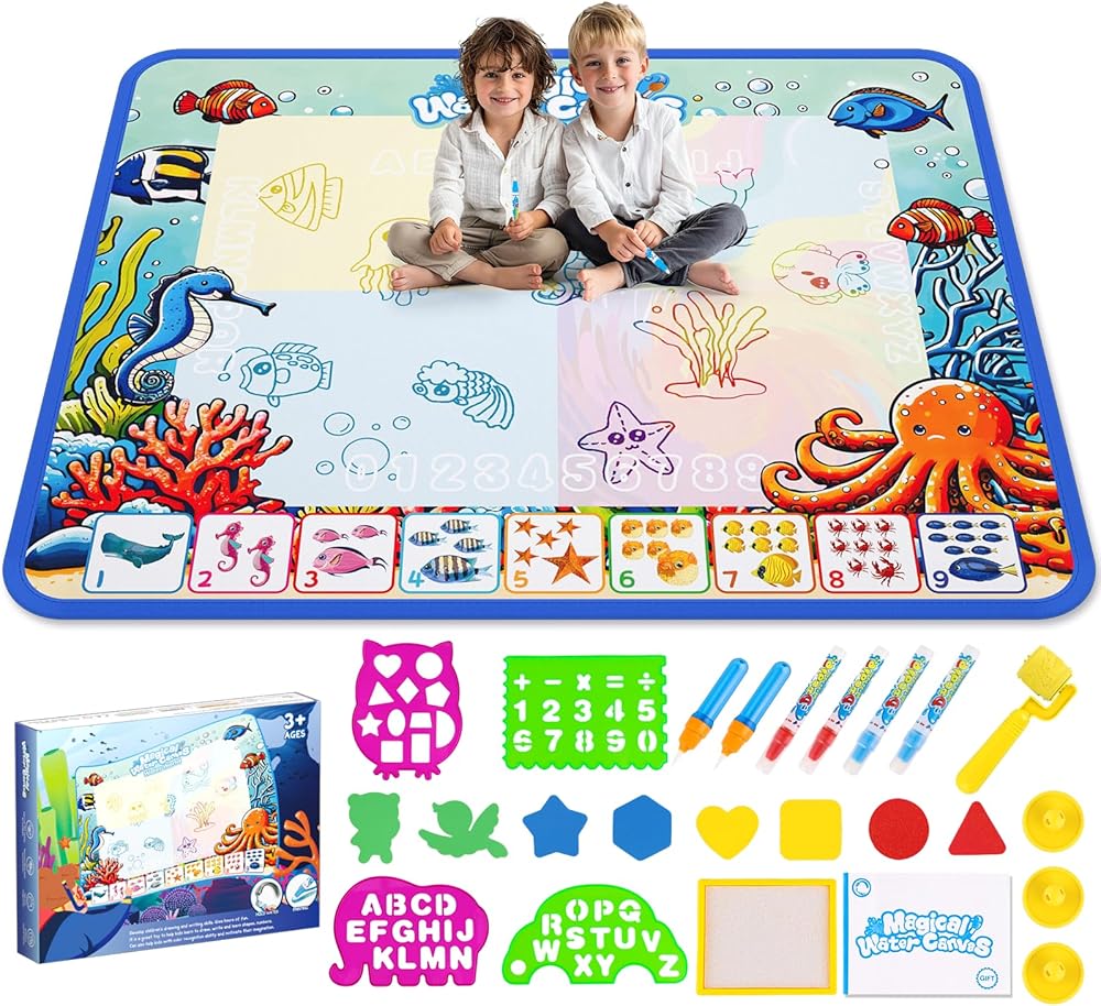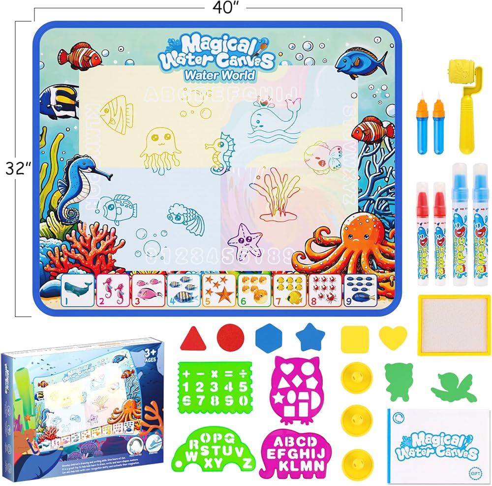 حصيرة رسومات الشعار المبتكرة المائية، حصيرة رسم للأطفال، ألعاب كتابة رسم للأطفال الصغار، حصيرة تلوين قابلة لإعادة الاستخدام، هدايا عيد الميلاد لعيد الميلاد لـ 3 4 5 6 7 8 سنوات من الأولاد والبنات، 40 × 32 بوصة
