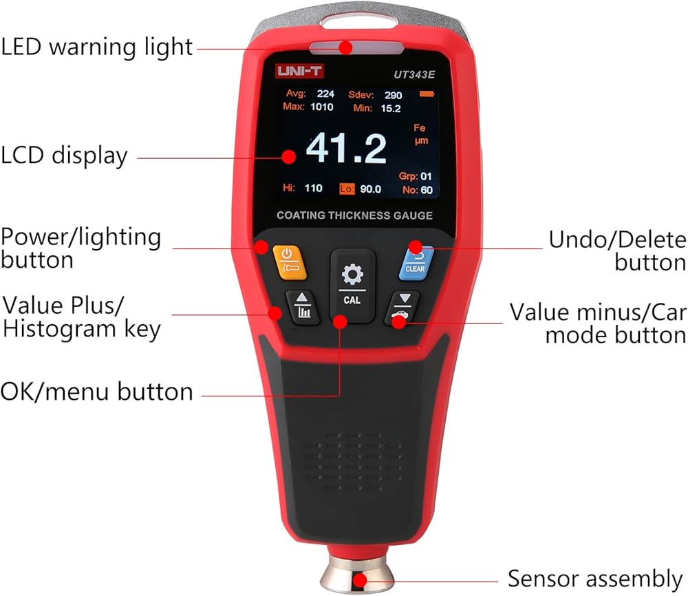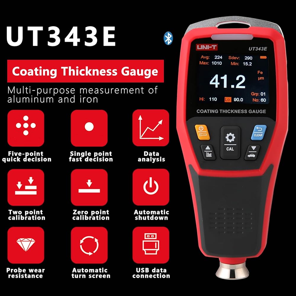 ►Widely Application: Widely used in manufacturing, metal processing, aerospace, shipbuilding, trains, scientific research, quality inspection and other industries. The thickness gauge is used in manufacturing, metal processing, product inspection and other testing fields. It is an essential instrument for coating thickness testing.
