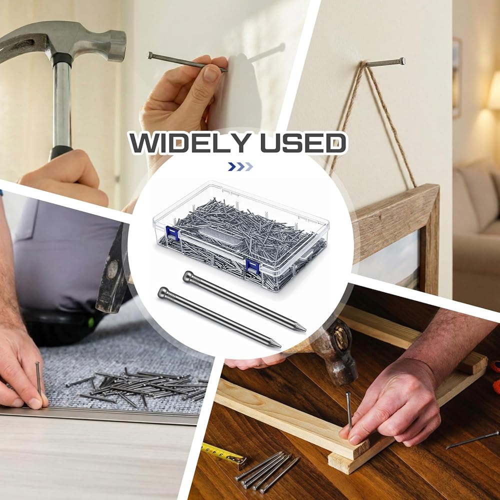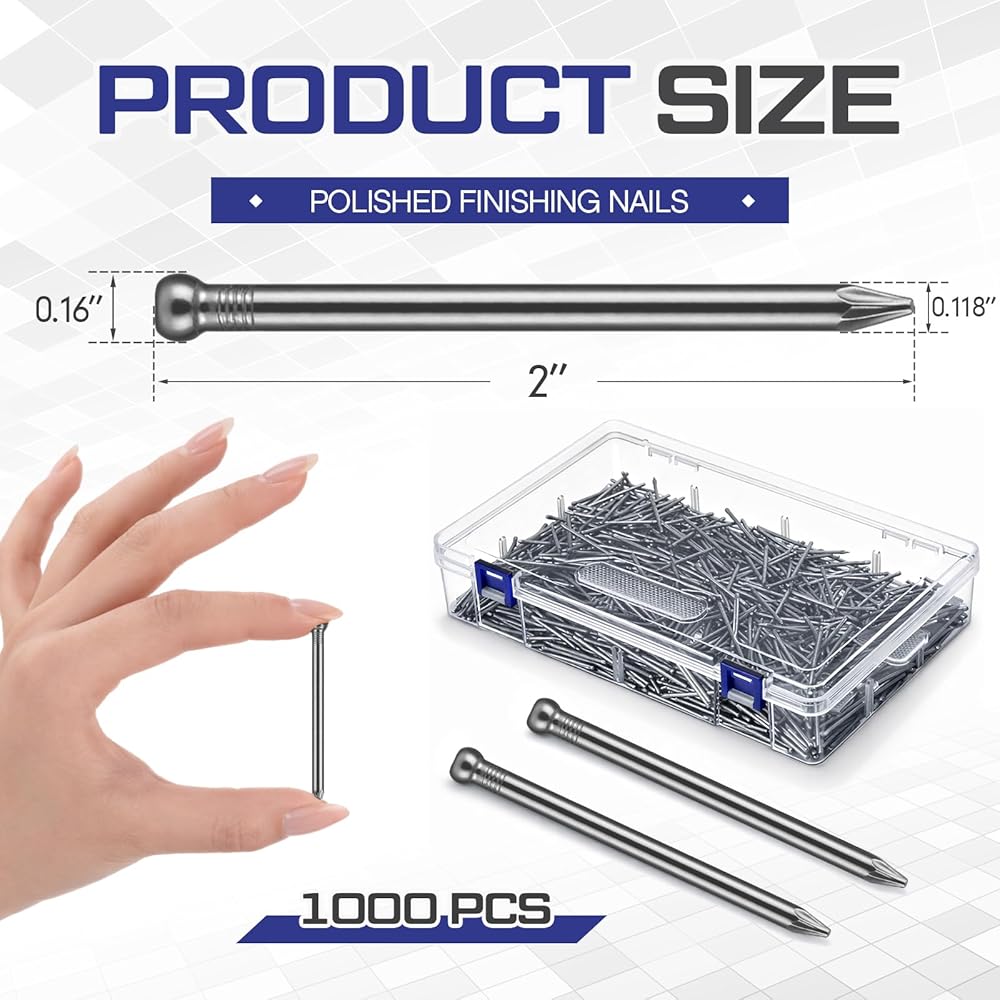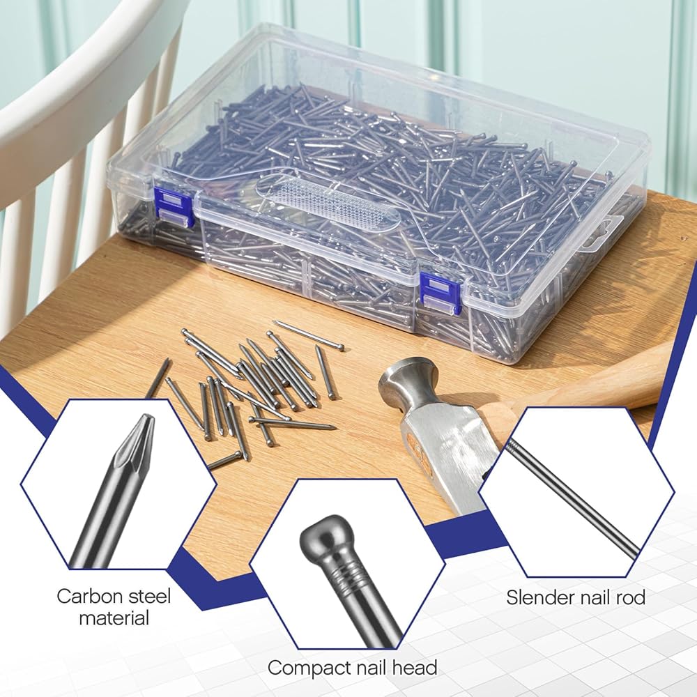 • Sufficient Quantity for Projects: includes a durable plastic store box & 1000 pieces of 2 inch nails providing ample supply for full room renovations bulk DIY tasks and interior decoration projects This quantity reduces the need for frequent replenishment during ongoing work The small nails are suitable for various hanging and finishing applications around the home and workshop