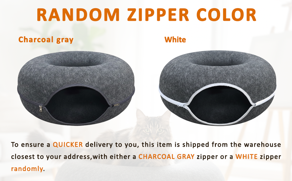 Peekaboo Cat Tunnel with Cute Paw Window, Large Indoor Donut Cat Cave for Play & Nap, Random Zipper Color (White/Charcoal Gray), Scratch-Resistant & Hand-Washable, Dark Gray