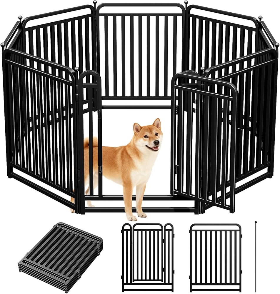 جرو روضة لعب للكلاب سياج في الهواء الطلق أنبوب معدني سميك، عتبة منخفضة لعب الكلب في الداخل، ارتفاع 81.28 سم، 8 ألواح للكلاب الصغيرة/المتوسطة/الكبيرة (أسود)