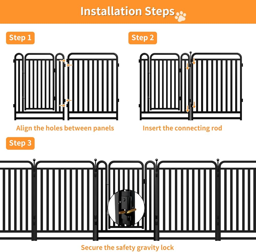 【متعدد الأغراض】يتميز قلم روضة الكلاب الأسود هذا بتصميم أنيق وعصري، ومناسب لقلم لعب الحيوانات الأليفة الداخلي، أو قلم تدريب الكلاب في الهواء الطلق، أو سياج الحديقة المؤقت. إنه يعزز المظهر الجمالي للديكور الداخلي والمساحات الخارجية.