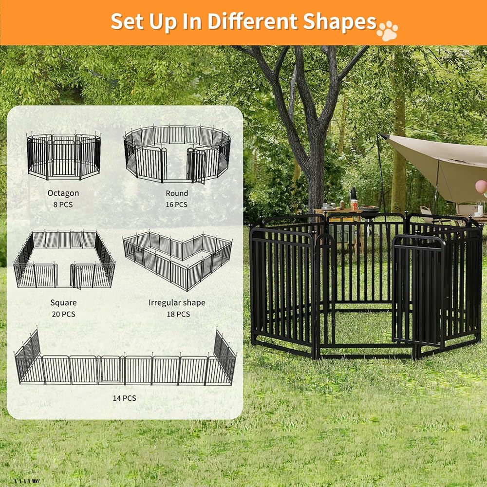 【مجموعات مرنة】يوفر روضة الكلاب الخاصة بنا في الهواء الطلق ارتفاعين: 32 بوصة و40 بوصة. من خلال ضبط عدد ألواح السياج، يمكنك بسهولة تكوين روضة الحيوانات الأليفة لإنشاء دوائر أو مضلعات أو تخطيطات حرة الشكل، مما يجعلها متعددة الاستخدامات للاستخدام الداخلي والخارجي. أسوار الكلاب هذه مصممة للاستخدام الداخلي لتناسب الحيوانات الأليفة ذات الأحجام، بما في ذلك الكلاب والأرانب والقطط وما إلى ذلك؛