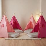Wilwolfer 2 Pack Kids Teepee Tent Bulk with Light and Inflatable Airbed, Pink