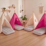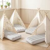 • Quick Setup: Our teepee allows effortless assembly in minutes. The inflatable mattress quickly fills with pump (not included). When the party ends, everything folds compactly into the included storage bag for easy transport and neat organization.