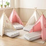 • Pink Sleepover Tents Set: This enchanting 2-piece teepee tent collection creates magical moments for little girls. Each spacious 68"x47" pink tent comes with a premium 63.8"x28.3"x8.7" inflatable mattress and 78.7" twinkling star lights (10 LEDs) and flag, perfect for sleepovers, birthday parties or imaginative play. The breathable polyester fabric and mesh windows ensure comfort during hours of fun.