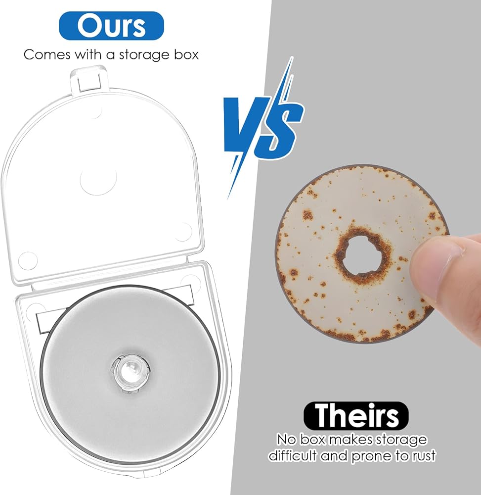 【Package Included】You will receive 5 pieces of 45 mm rotary cutter blades and 1 clear storage box for convenient store and carry