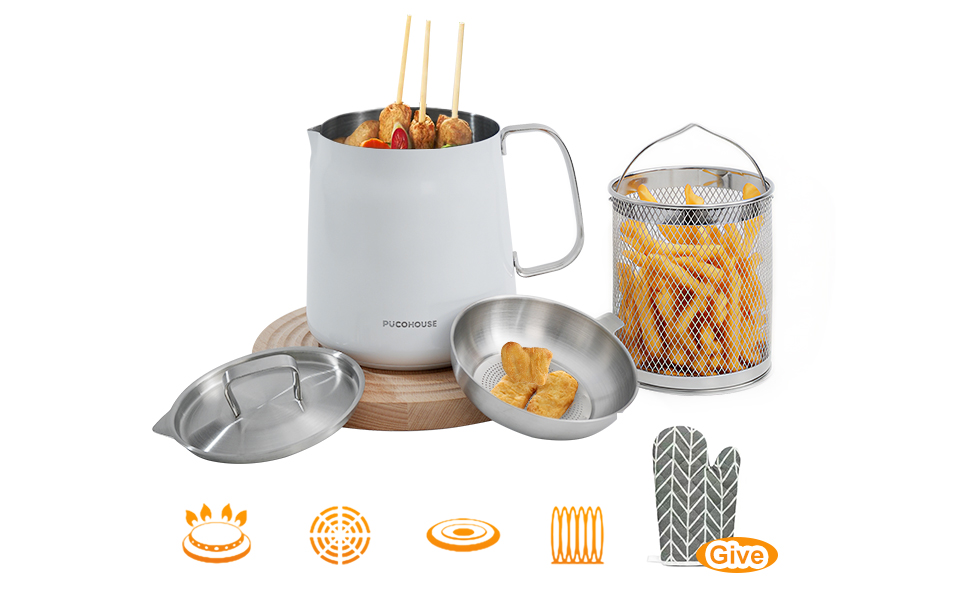 • [مقلاة ذات سعة كبيرة 2.0 لتر] حجم مثالي للعائلات الصغيرة أو الطبخ الفردي، قم بقلي كميات لذيذة من التمبورا أو قطع الدجاج أو البطاطس المقلية.