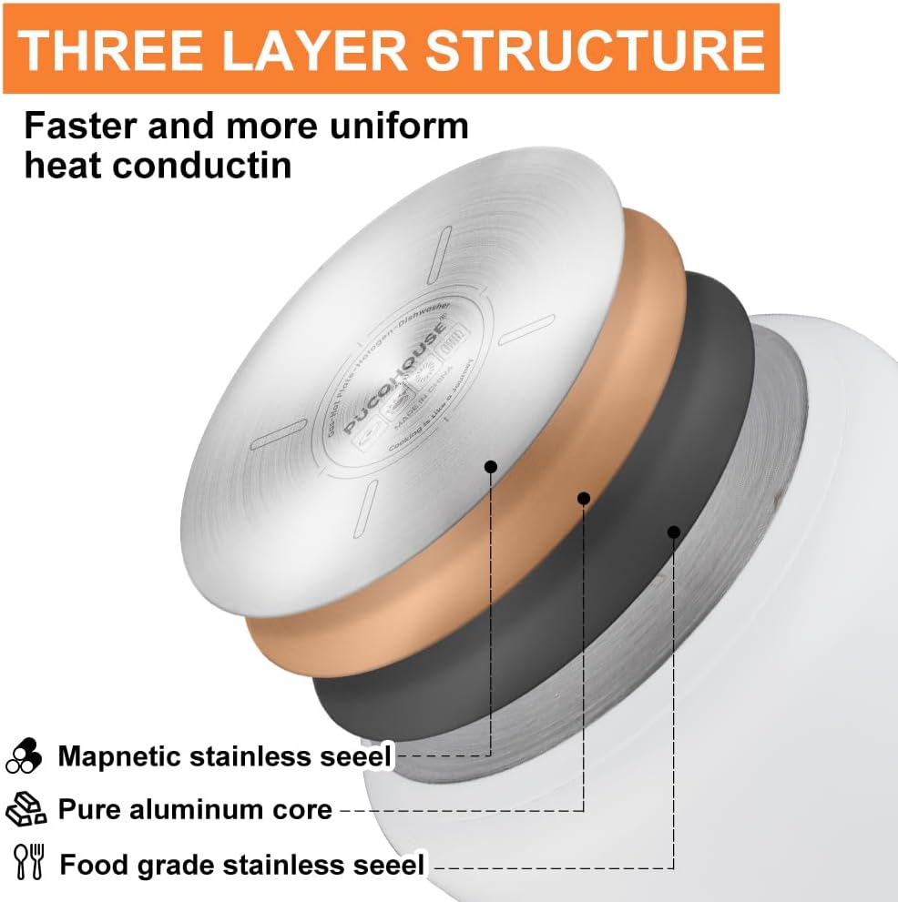• [قاعدة مركبة للتدفئة المتساوية] توفر القاعدة ثلاثية الطبقات توزيعًا سريعًا ومتساويًا للحرارة، متوافقة مع مواقد الحث والغاز والسيراميك والكهرباء.