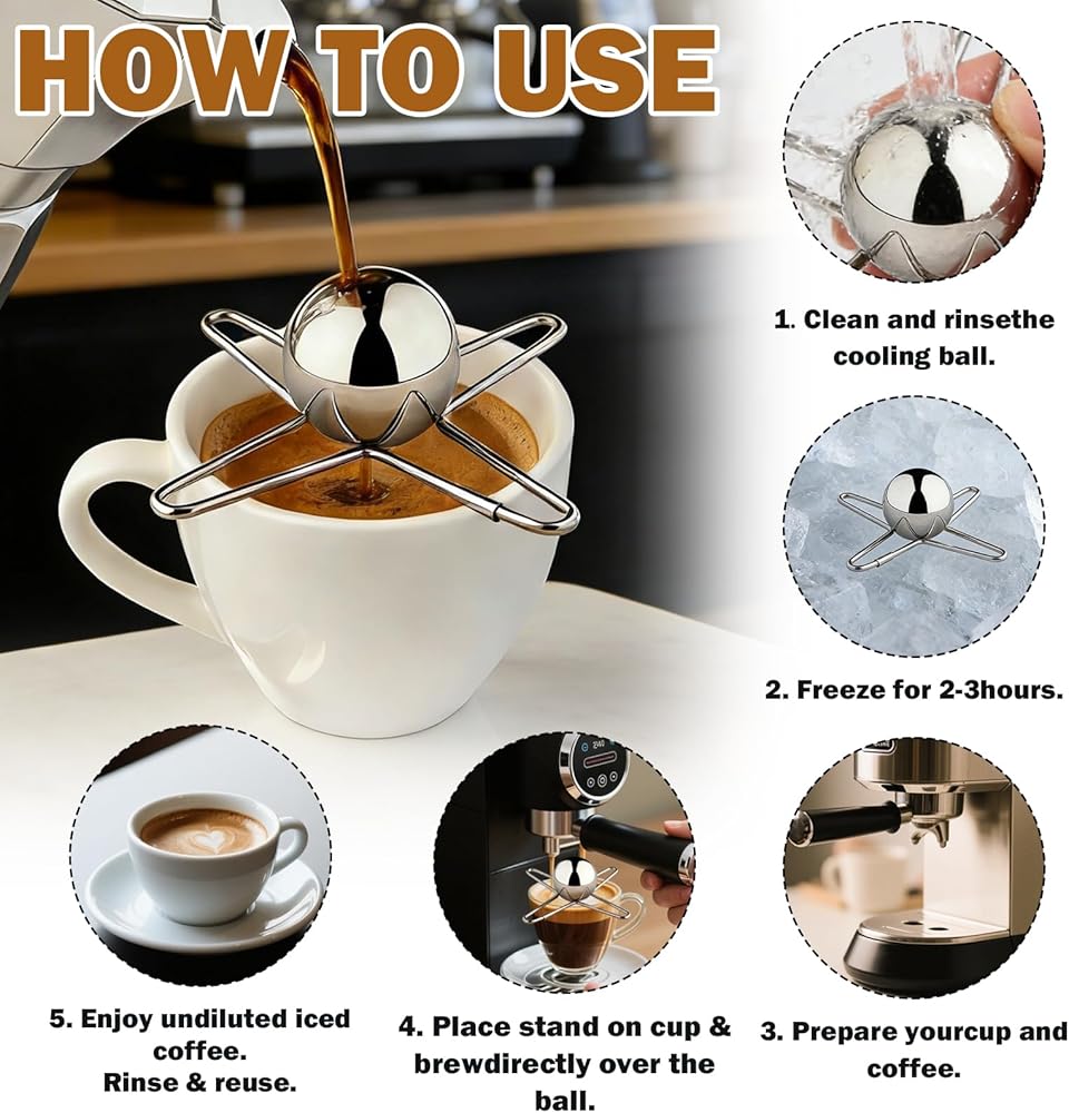 Pure Flavor, Awakened Aroma: This Espresso Cooling Ball Includes Reusable Stainless Steel Ice Balls With An Innovative Blanching Process That Releases The True Flavor Of Your Coffee. This One-Pack Lets You Enjoy A Rich Coffee Experience With Friends Without Waiting.
