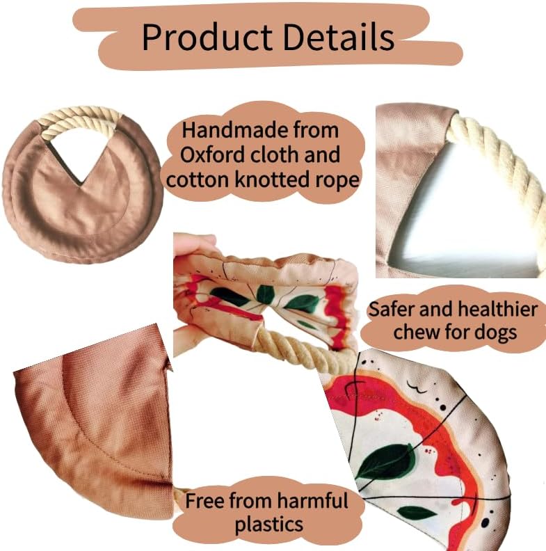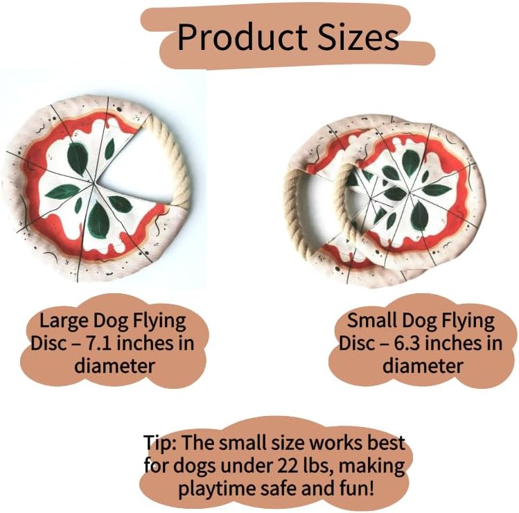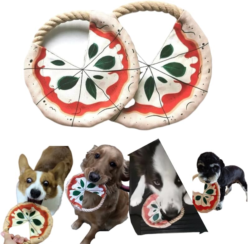 DUAL-PACK VALUE: Set includes 2pack pizza-shaped dog flying disc set includes 1 small frisbee for dogs and 1 large dog rope frisbee, perfect for interactive play with your furry friend indoors or outdoors