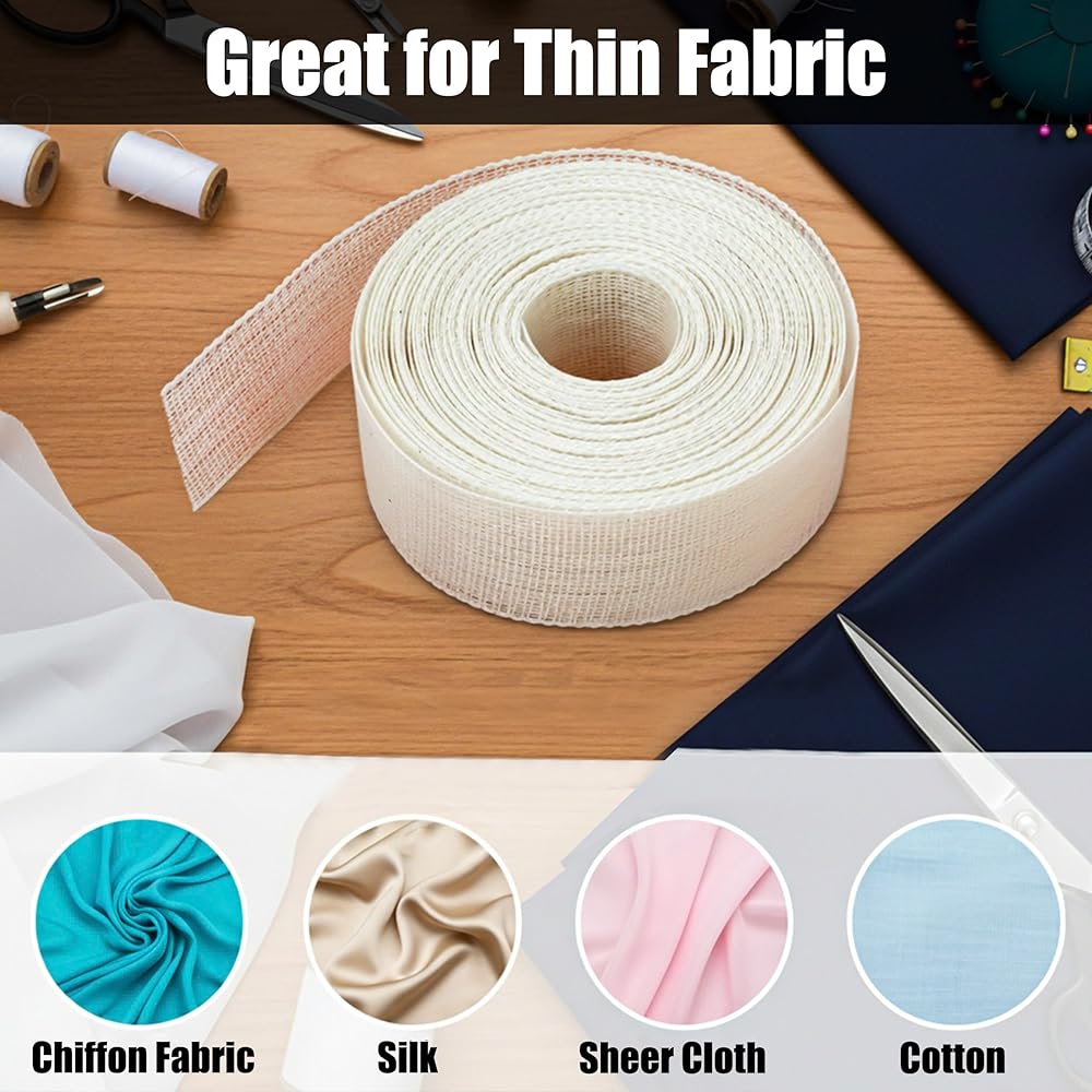 التحكم الدقيق في عرض الحاشية: يعمل بشكل مثالي كدليل درز للأقمشة الرقيقة مثل الشيفون والحرير. ما عليك سوى تمزيق شريط هيكل السمكة إلى العرض المطلوب. يمنع الشريط القماش من الانزلاق إلى اليسار أو اليمين أثناء الخياطة، مما يضمن عرضًا دقيقًا ومتسقًا للحاشية في كل مرة.