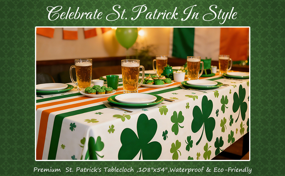 Durable & Waterproof Plastic Material: Made from thick, waterproof plastic, these tablecloths help protect tables from spills, stains, and messes. Suitable for both indoor and outdoor St. Patrick's Day celebrations.