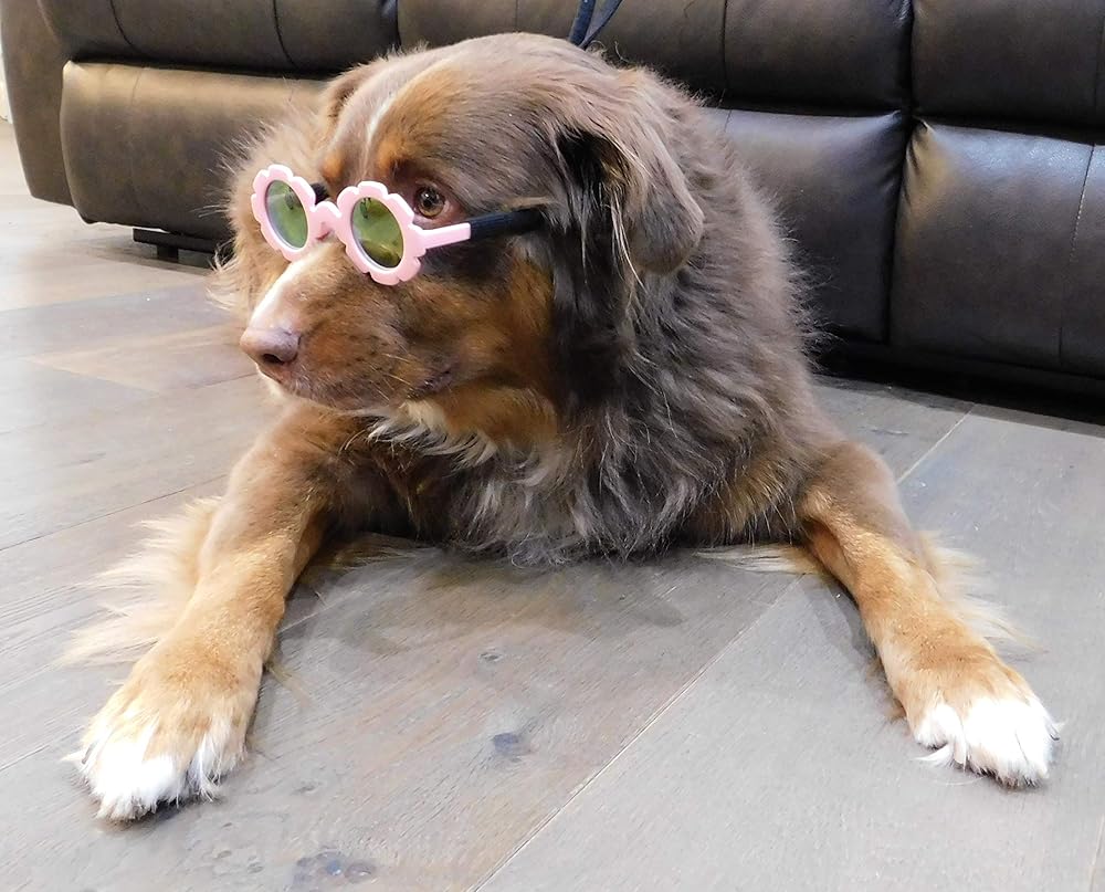 نظارات شمسية G001 للكلاب للسلالات المتوسطة (20-40 رطلاً) (مرآة وردية وردية على شكل زهرة)