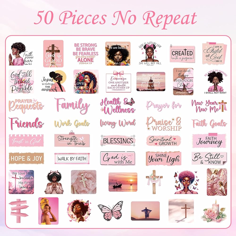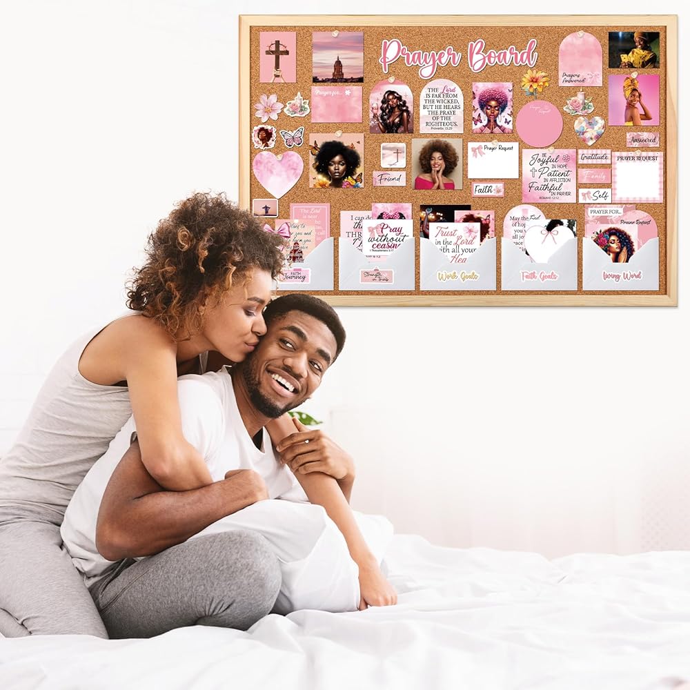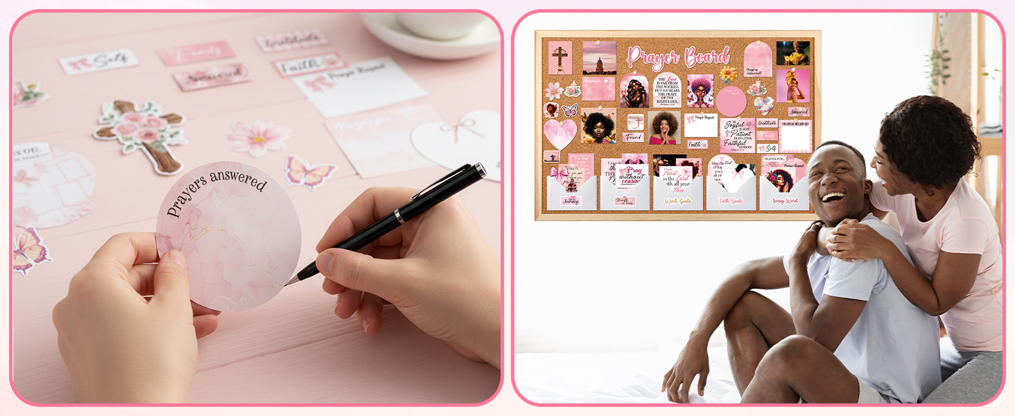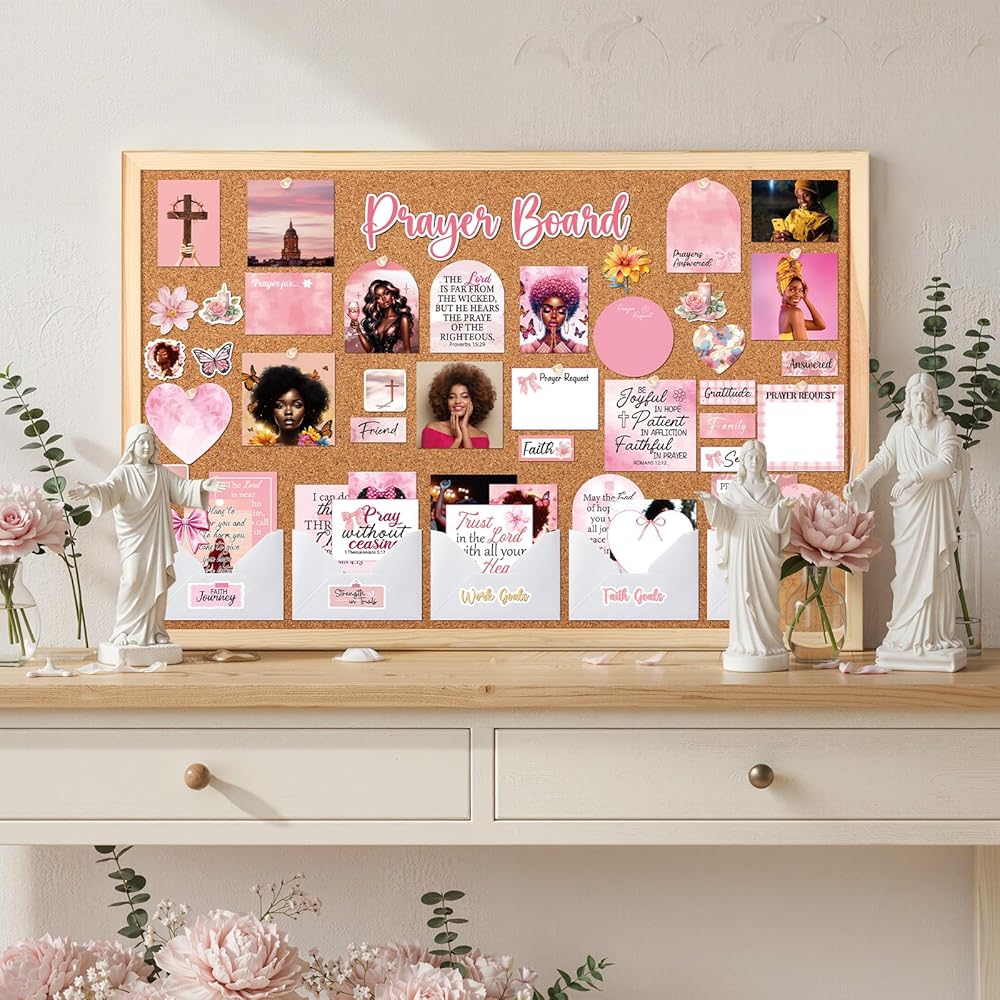 مجموعة لوحة الصلاة للنساء السود - 162 قطعة من ملصقات لوحة الصلاة من Vemfare مع دبابيس ومغلف وبطاقات اقتباسات لآية الكتاب المقدس، وملصقات سجل القصاصات الوردية، ومستلزمات دراسة الكتاب المقدس للنساء (وليس لوحة الفلين)