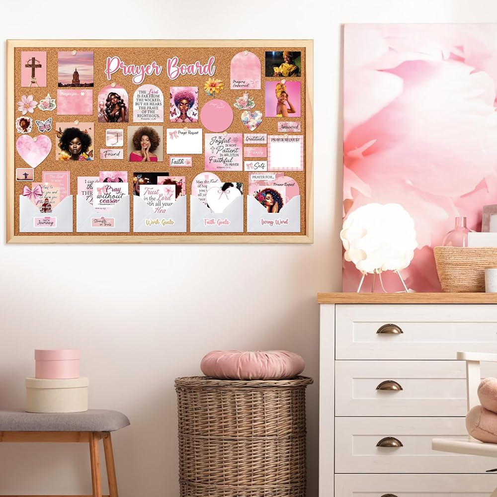 • مجموعة لوحة رؤية الصلاة: مجموعة كاملة تحتوي على 50 ملصق صلاة، و50 دبوسًا، و6 أظرف، و56 بطاقة اقتباسات من الآية الكتابية. مثالية للوحة الصلاة لإنشاء مساحة مخصصة للصلاة
