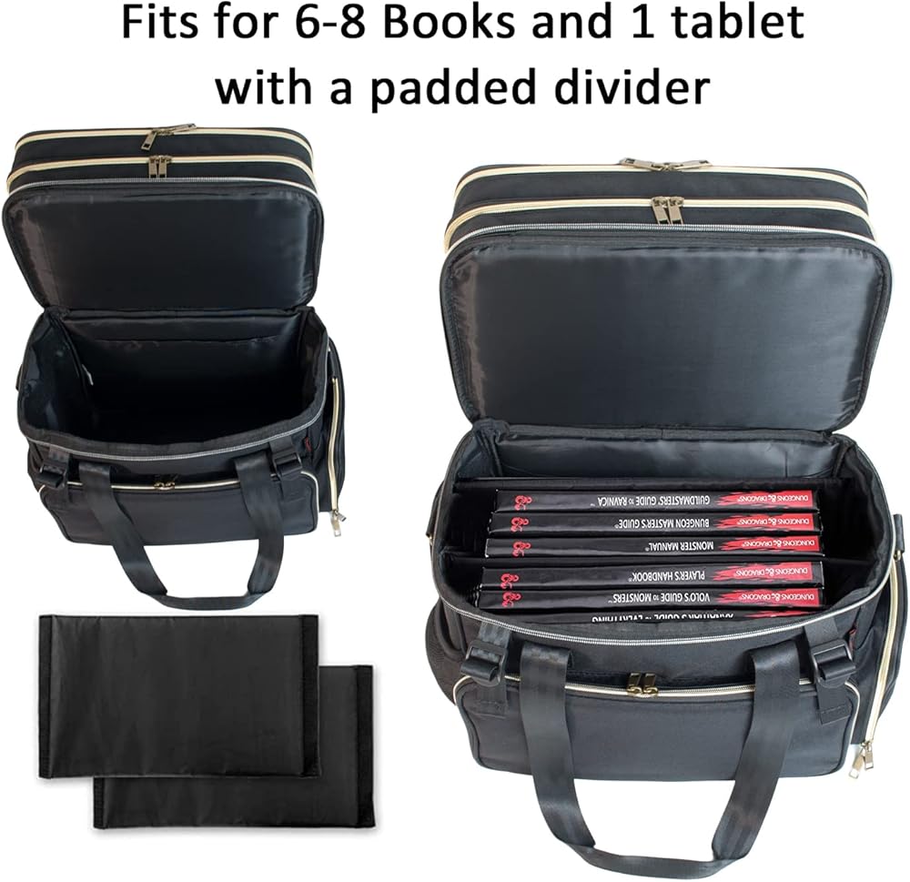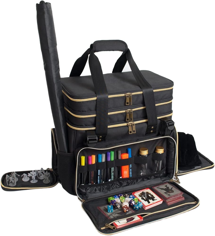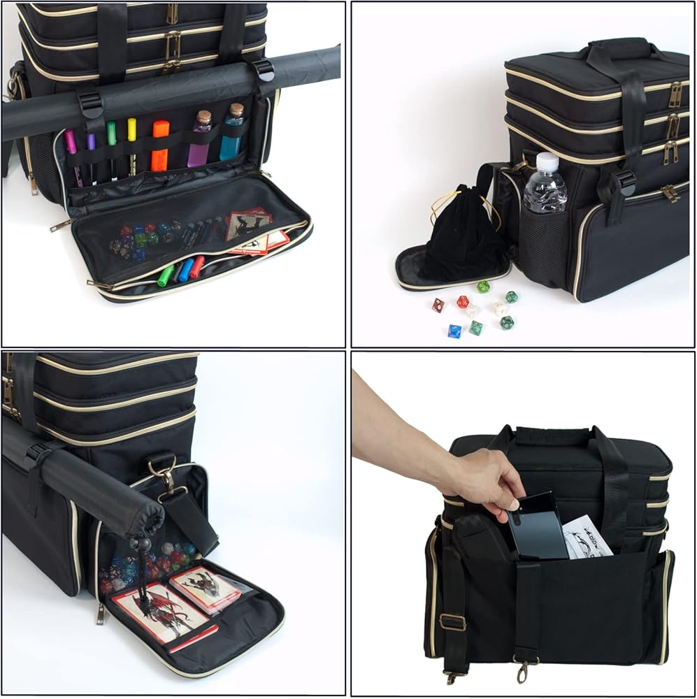 FOR D&D ADVENTURERS: Super stylish and functional, this travel bag is purpose-built for Dungeons & Dragons enthusiasts. It features a unique patented design (US D1097567S). Carry all your essential gear – dice, miniatures, rulebooks, character sheets, and more – in one organized place. If you need a reliable bag to haul all your equipment, this D&D miniatures bag is the answer!