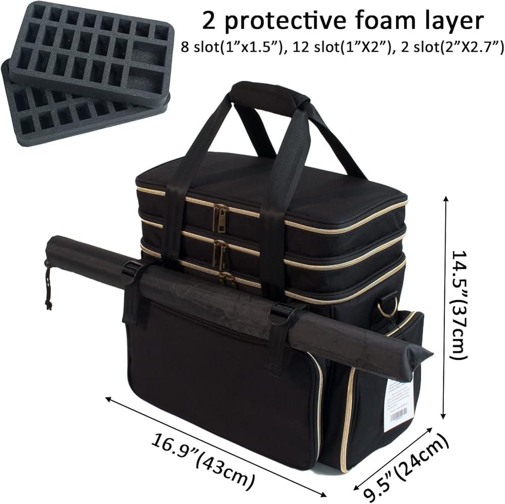 MULTITASKING & DURABLE: This versatile, unisex bag isn't just for game night – it's an excellent travel companion too. Made of durable, water-resistant material that's easy to clean, it withstands heavy use and protects your gear from the elements. The construction features reinforced stitching and strong zippers for long-lasting performance. Use the comfortable hand strap or the padded shoulder strap for easy carrying. It's an ideal choice for weekend trips or even for storing other items (toiletries, electronics, makeup, etc.) when you're off-duty from adventuring.