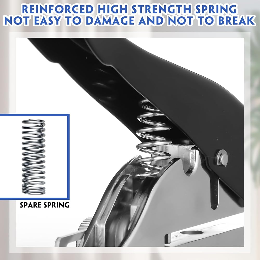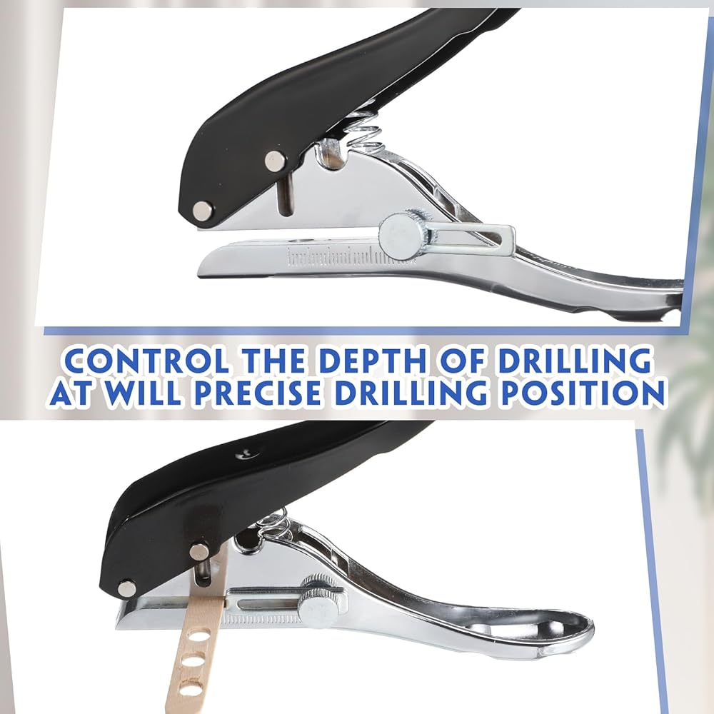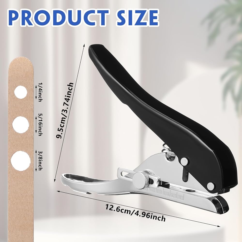 This versatile single hole punch creates an 6, 8, 10 mm (1/4, 5/16, 3/8 inch) round hole and can punch through binding combs, making it ideal for professional document binding. Its heavy duty stamping design allows it to effortlessly handle paper and PVC materials.
