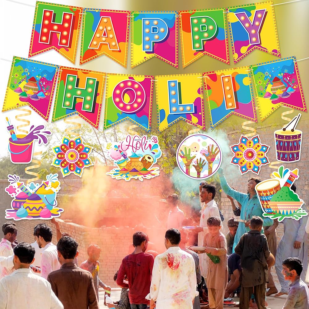 【مثالية للهولي】: تم تصميم اللافتة الملونة خصيصًا مع مجموعة متنوعة من العناصر التي ستكون مثالية للاحتفال بـ HOLI الخاص بك وإضافة جو مرح لديكورات حفلتك.