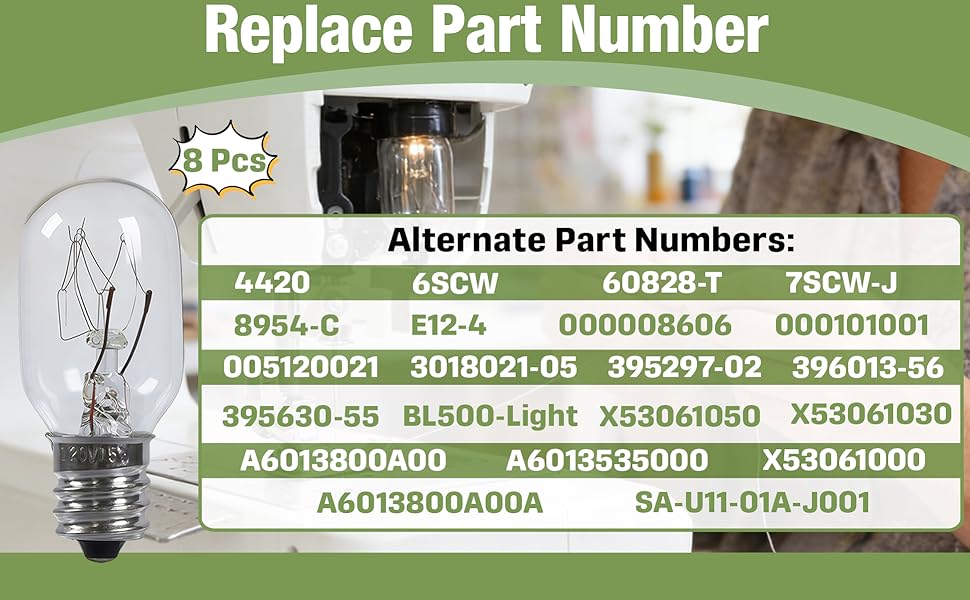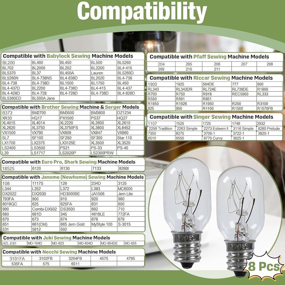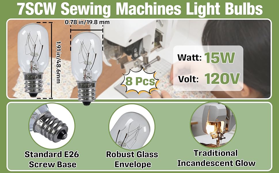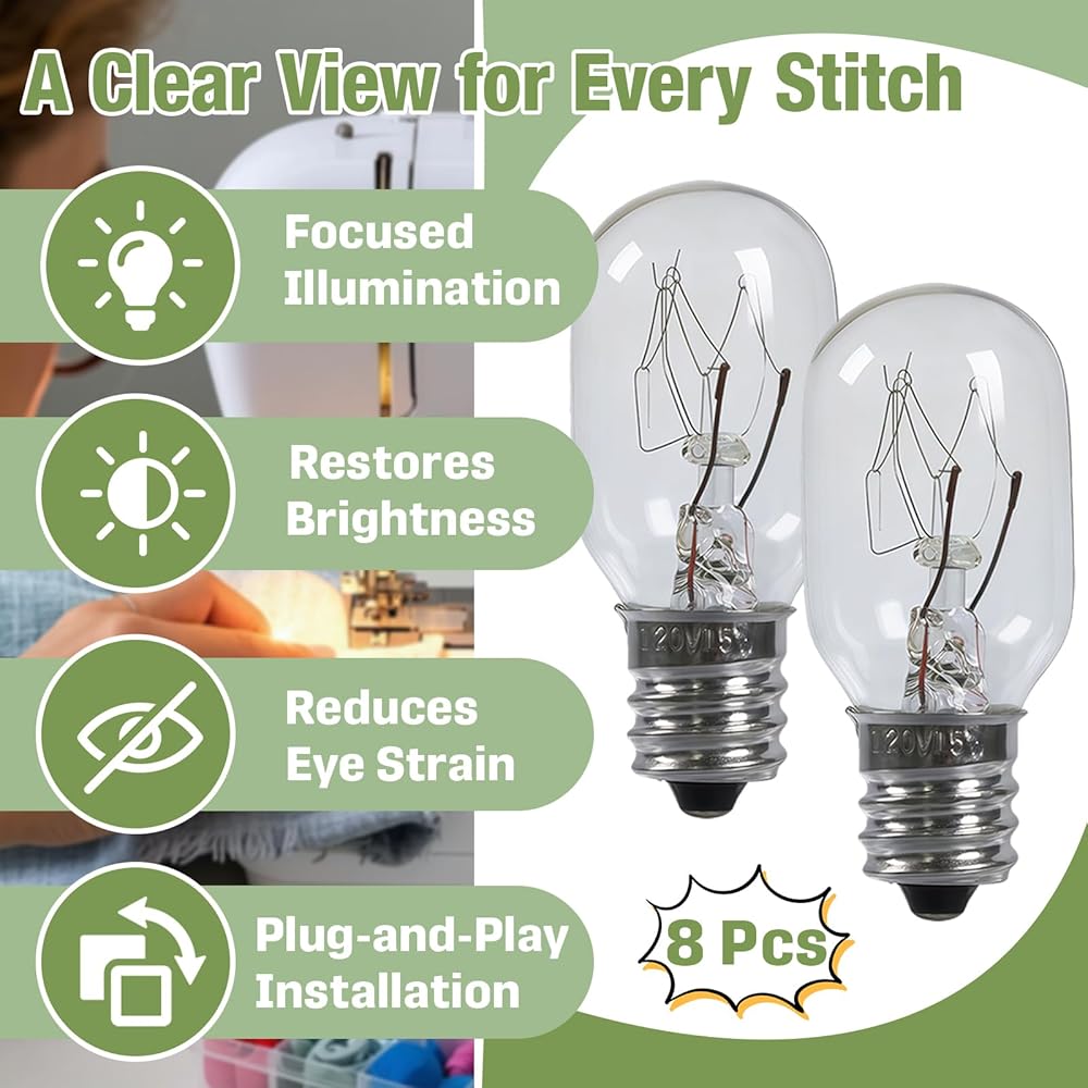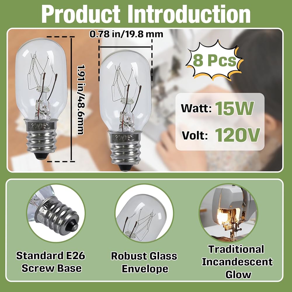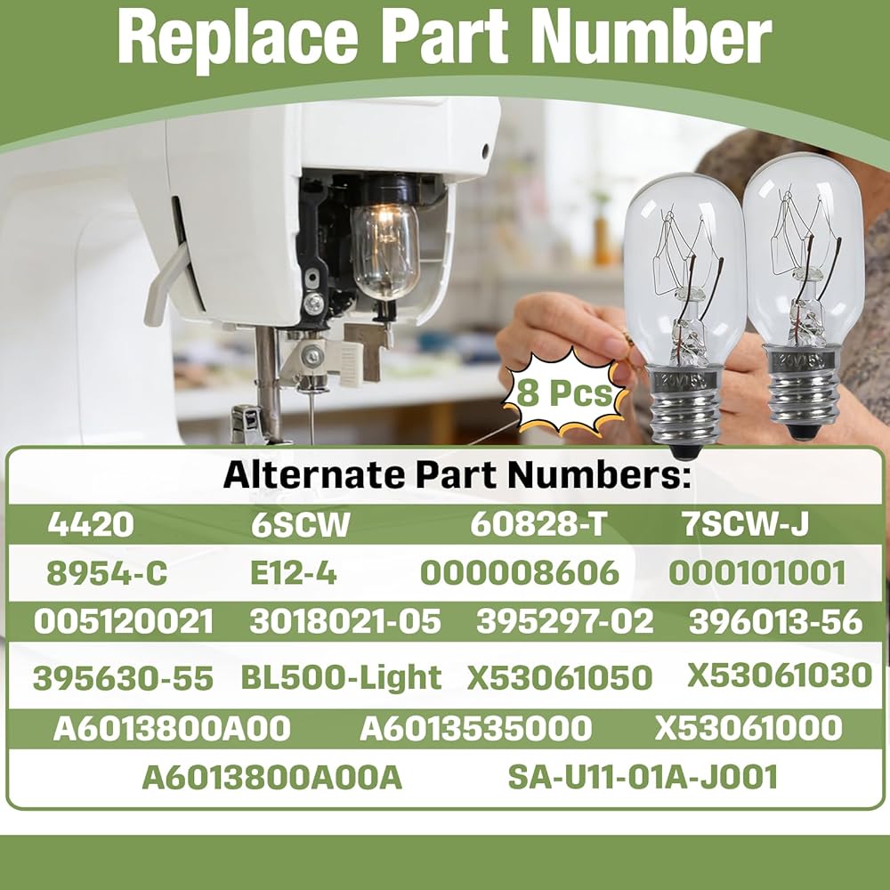 8 Pcs #7SCW 15W 120V Sewing Machine Light Bulb Replacement for Brother/Janome/Babylock/Singer/Kenmore Sewing Machines, Sewing Machine Accessories