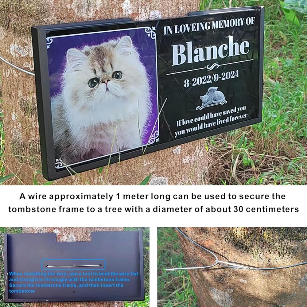 سهلة التركيب - تصميم مدبب في الأسفل لسهولة التركيب. كل ما عليك فعله هو دفعها إلى التربة الرطبة إلى الارتفاع المطلوب. يمكنك أيضًا تثبيت إطار شاهد القبر على الشجرة.
