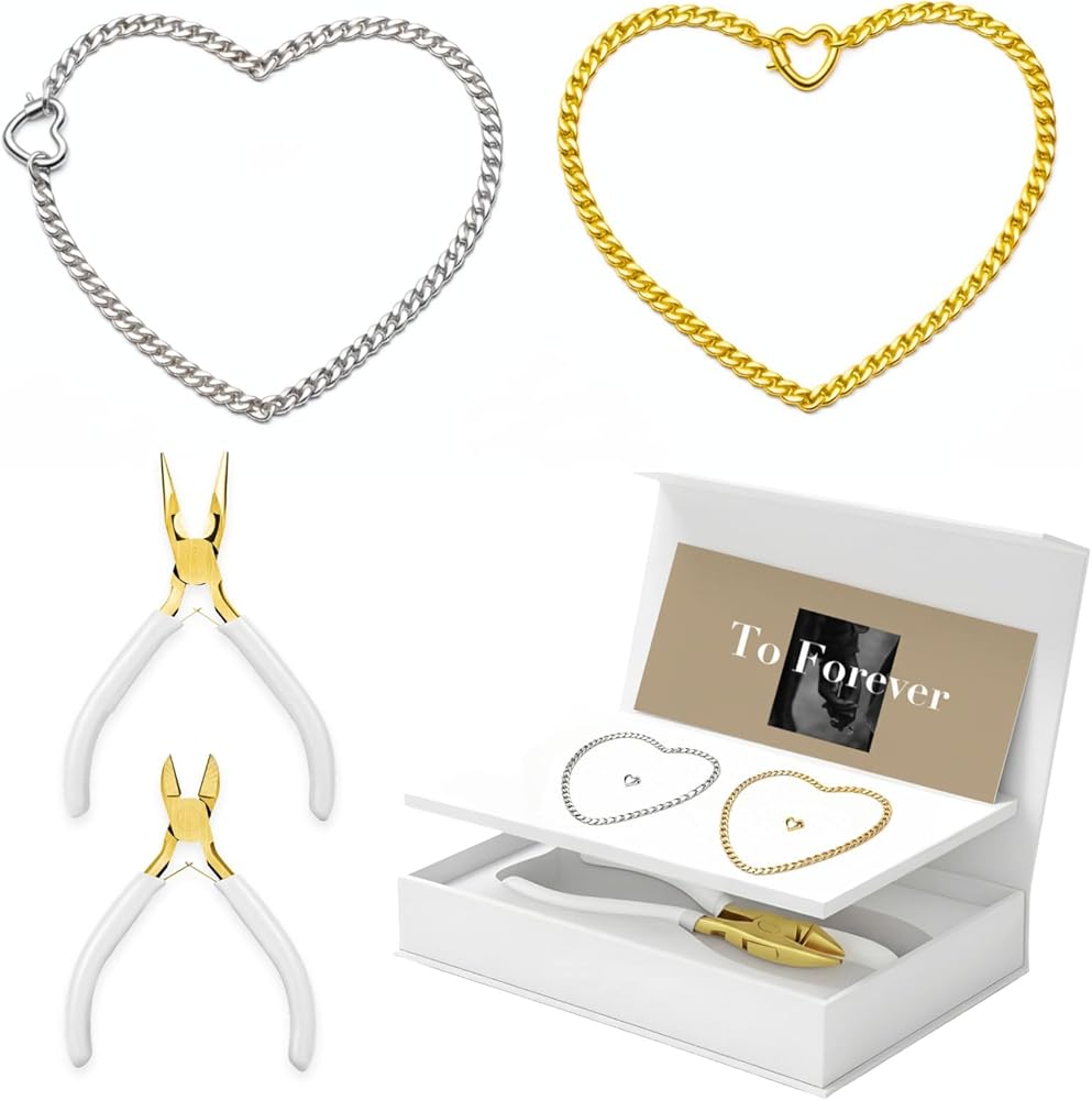 مجموعة الأساور الدائمة الكل في واحد - تتضمن كل ما يلزم لصنع سوارين: أساور قابلة للتعديل، ومشبكين على شكل قلب، وقواطع أسلاك، وكماشة. صديقة للمبتدئين ومصممة لتجربة زوجين بهيجة.
