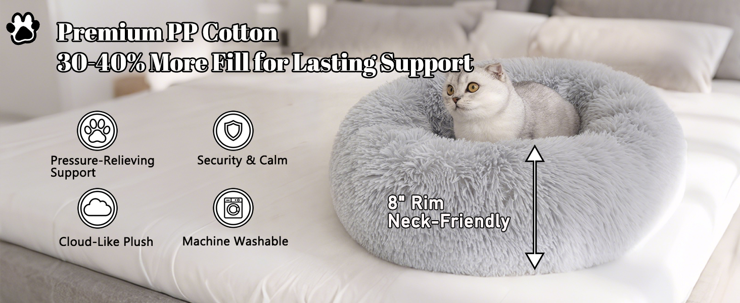ملاذ مهدئ ومضاد للقلق من أجل راحة هادئة: شكل الدونات اللطيف يخلق ملاذًا مهدئًا يشبه العش يساعد على تخفيف القلق والتوتر. يوفر هذا السرير المهدئ بيئة آمنة حيث يمكن لحيوانك الأليف أن يشعر بالحماية من جميع الجوانب، مما يعزز الاسترخاء ويقلل من السلوكيات المدمرة. إنه الملاذ المثالي للحيوانات الأليفة التي تحتاج إلى المزيد من الراحة والطمأنينة، مما يساعدها على الهدوء بشكل أسرع والاستمتاع بليالي أكثر صحة.