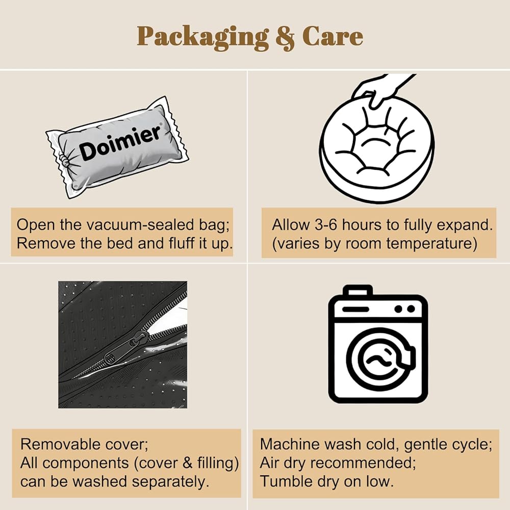 ميزات مدروسة وآمنة للحيوانات الأليفة وسهلة العناية: مصممة لتوفير الراحة والمتانة. الجزء السفلي المتين غير القابل للانزلاق مع نقاط من مادة TPU يحافظ على ثبات بساط السرير في مكانه على الأرضيات الصلبة أو البلاط، مما يضمن سلامة حيوانك الأليف. يمكن غسل الغطاء المزود بسحاب القابل للإزالة في الغسالة بالكامل، مما يجعل التنظيف سهلاً ويساعدك على الحفاظ على مساحة جديدة وصحية لحيوانك الأليف.