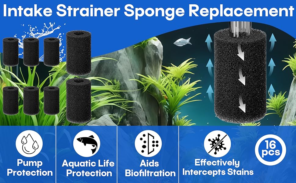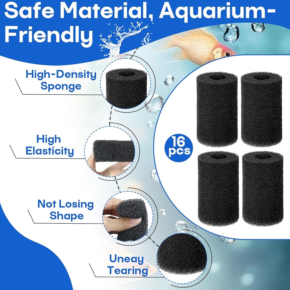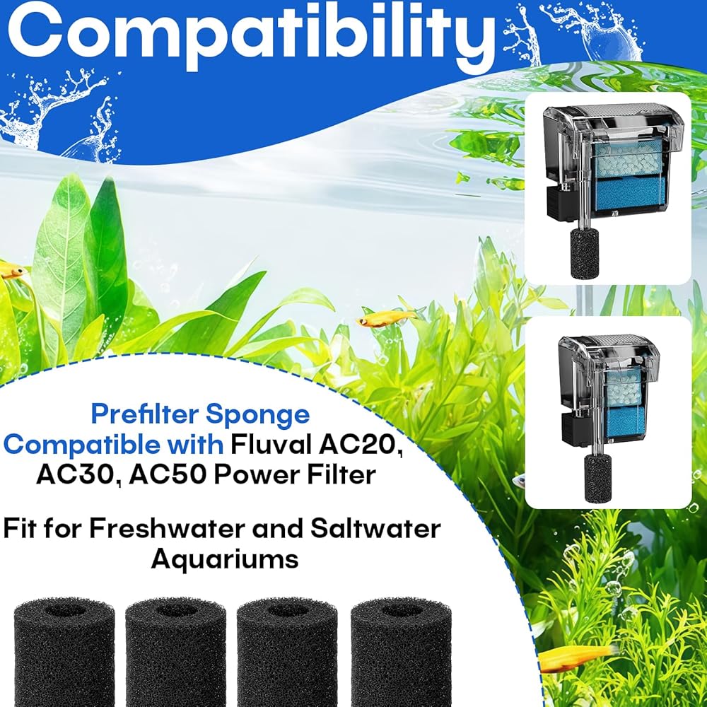 16 قطعة من إسفنجة الفلتر المسبق متوافقة مع فلتر الطاقة AC20 AC30 AC50، استبدال إسفنجة مصفاة السحب، تناسب أحواض المياه العذبة والمياه المالحة