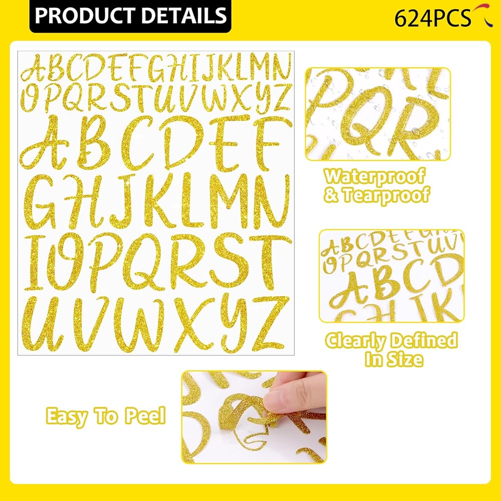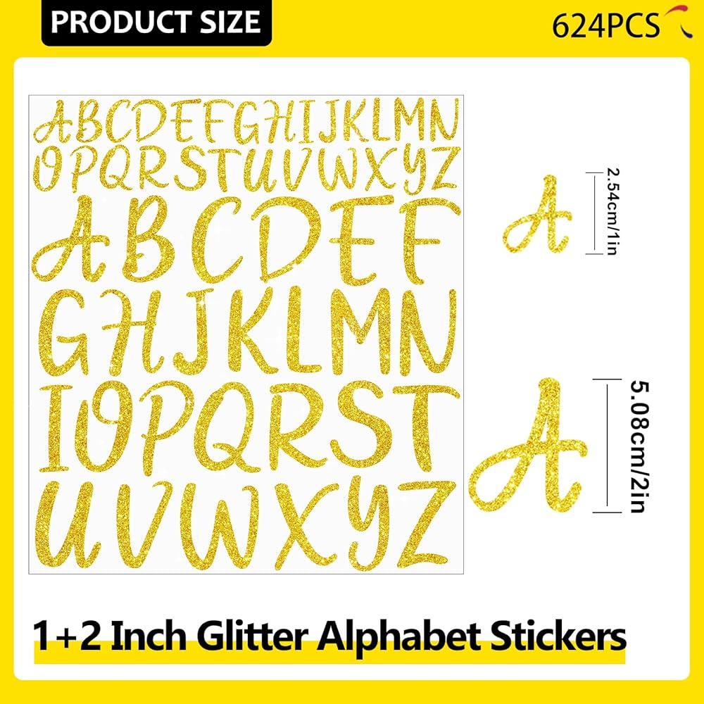مجموعة ملصقات حروف لامعة مقاس 1 و2 بوصة: سوف تحصل على مجموعة من 12 ملصق حروف من الفينيل، مع إجمالي 624 قطعة من الحروف، بما في ذلك 312 قطعة من الحروف الكبيرة مقاس 1 بوصة و312 قطعة من الحروف الكبيرة مقاس 2 بوصة. كمية كافية يمكن أن تلبي استخدامك اليومي المختلف، مثل الاستخدام للحرف اليدوية ودفتر القصاصات وتغليف الهدايا وبطاقات الدعوة وزجاجات المياه واللافتات والمزيد