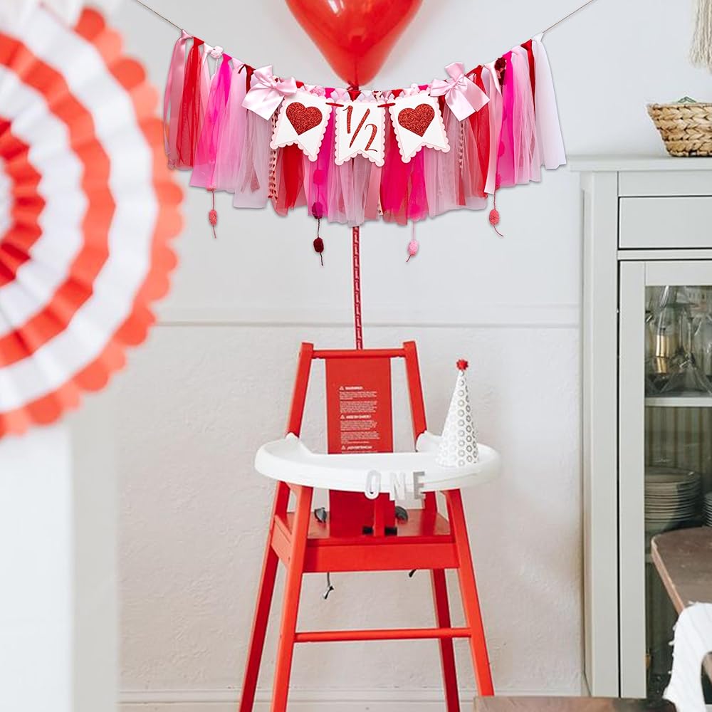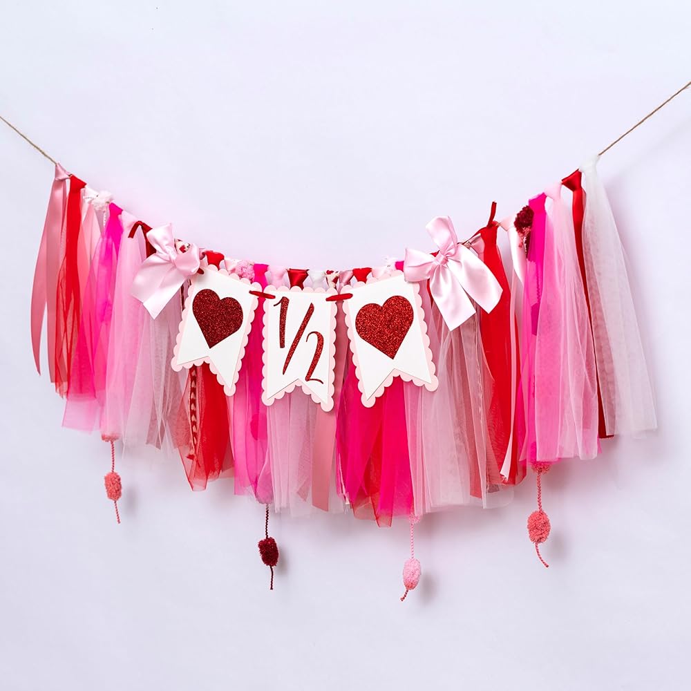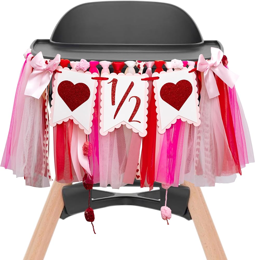 Upfirst عيد الحب نصف عيد ميلاد راية كرسي مرتفع - حبيب صغير 1/2 عيد ميلاد زينة حفلة راية، حلوة 6 أشهر طفل لوازم ديكور الحفلات، عيد حب سعيد راية كرسي مرتفع، علامة الحب زخارف خلفية حفلة إكليل