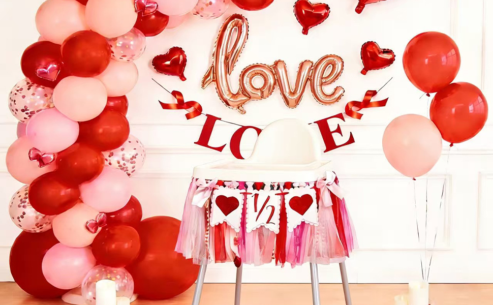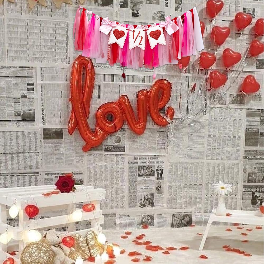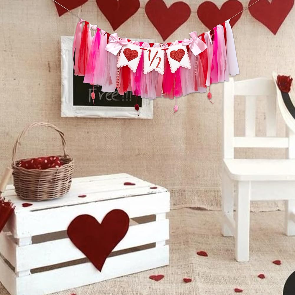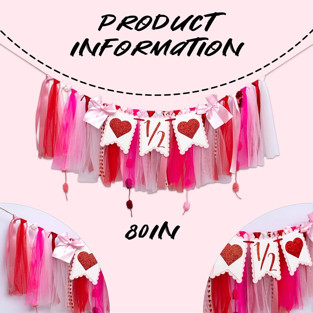 Upfirst عيد الحب نصف عيد ميلاد راية كرسي مرتفع - حبيب صغير 1/2 عيد ميلاد زينة حفلة راية، حلوة 6 أشهر طفل لوازم ديكور الحفلات، عيد حب سعيد راية كرسي مرتفع، علامة الحب زخارف خلفية حفلة إكليل